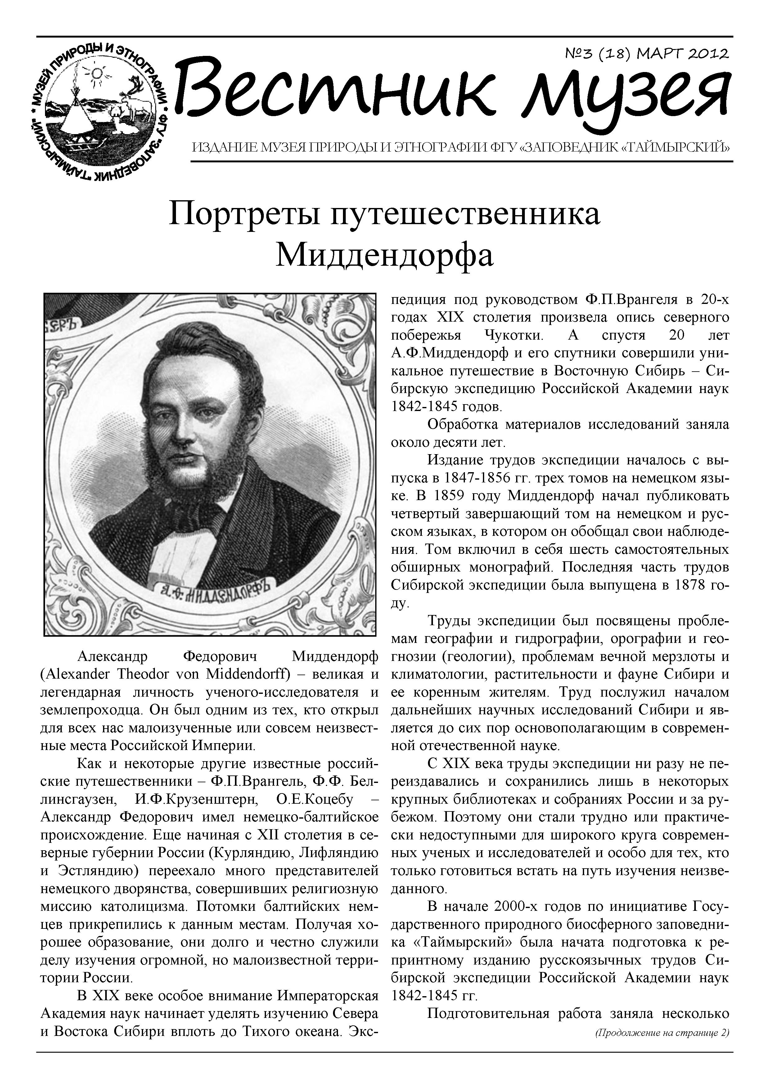Миддендорфом // Край наш красноярский : календарь знаменательных и памятных дат на 2003 год. - Красноярск : Кларетианум, 2002. - С. 128-129.