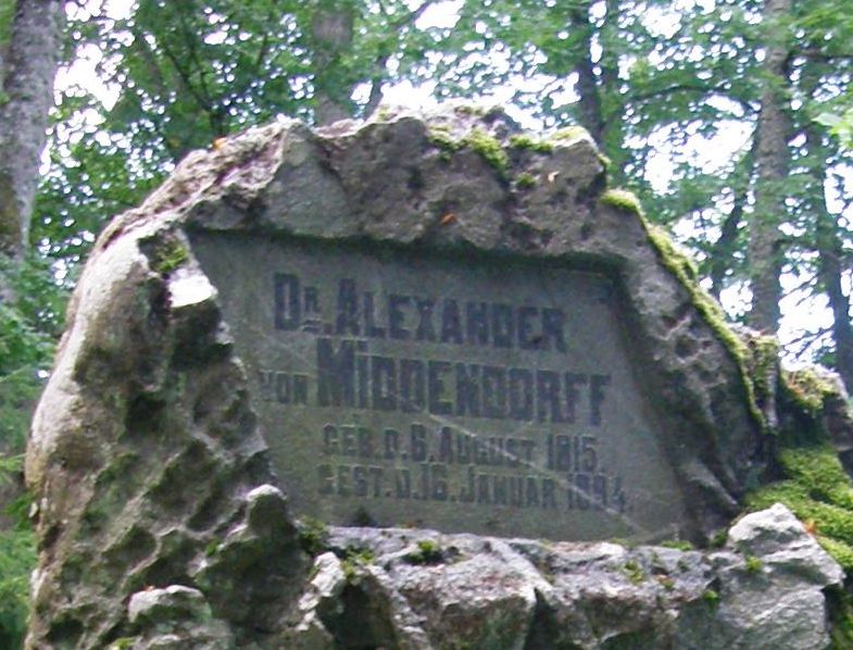 По желанию Миддендорфа на его могиле был поставлен необработанный камень с надписью «Dr. Alexander von Middendorf» и датами рождения и смерти.