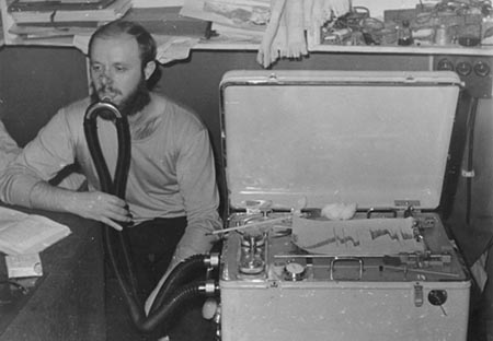1967г. Ю.А. - врач 12-й антарктической экспедиции, проводит медицинское обследование себя
