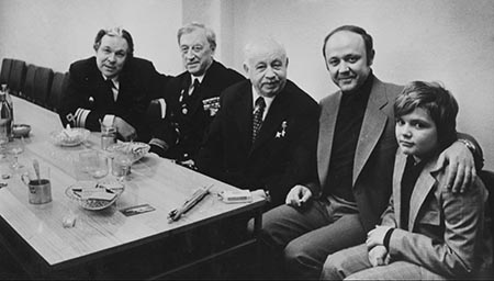 1976г. Москва. Встреча трех руководителей ГлавСевМорПути. АА. Кузнецов - генерал-майор, А.А.Афанасьев - адмирал, И.Д. Папанин - полярный исследователь, д-р географических наук, контр-адмирал, Герой Советского Союза, Ю.А. с сыном Колей