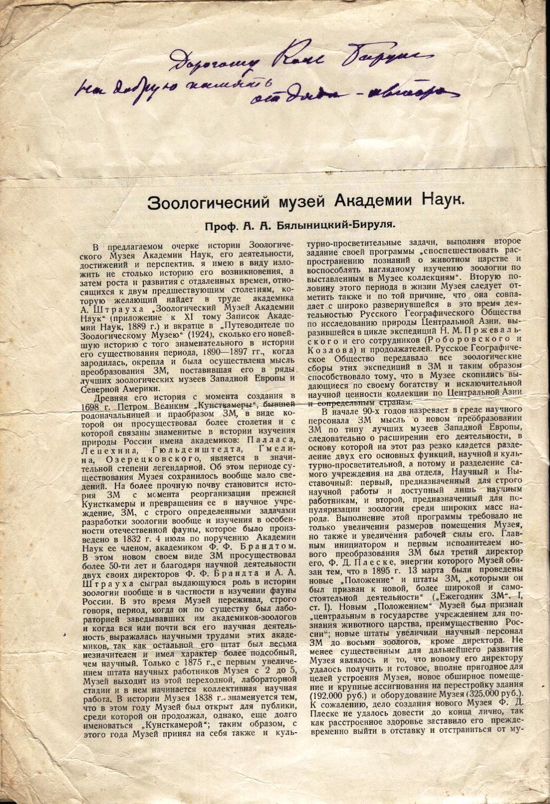 Выдержки из книги, где упоминается А. А. Бялыницкий-БируляПавел Николаевич Зырянов Адмирал Колчак, верховный правитель Россииhttp://lib.rus.ec/b/139215/read#n_403Старшим зоологом был назначен сотрудник Зоологического музея Академии наук Алексей Андреевич Бялыницкий-Бируля. Ему было 36 лет, ранее он вёл работы на Соловецких островах, а в 1899 году побывал на Шпицбергене. Толль считал его одним из лучших знатоков полярной морской фауны.[75]