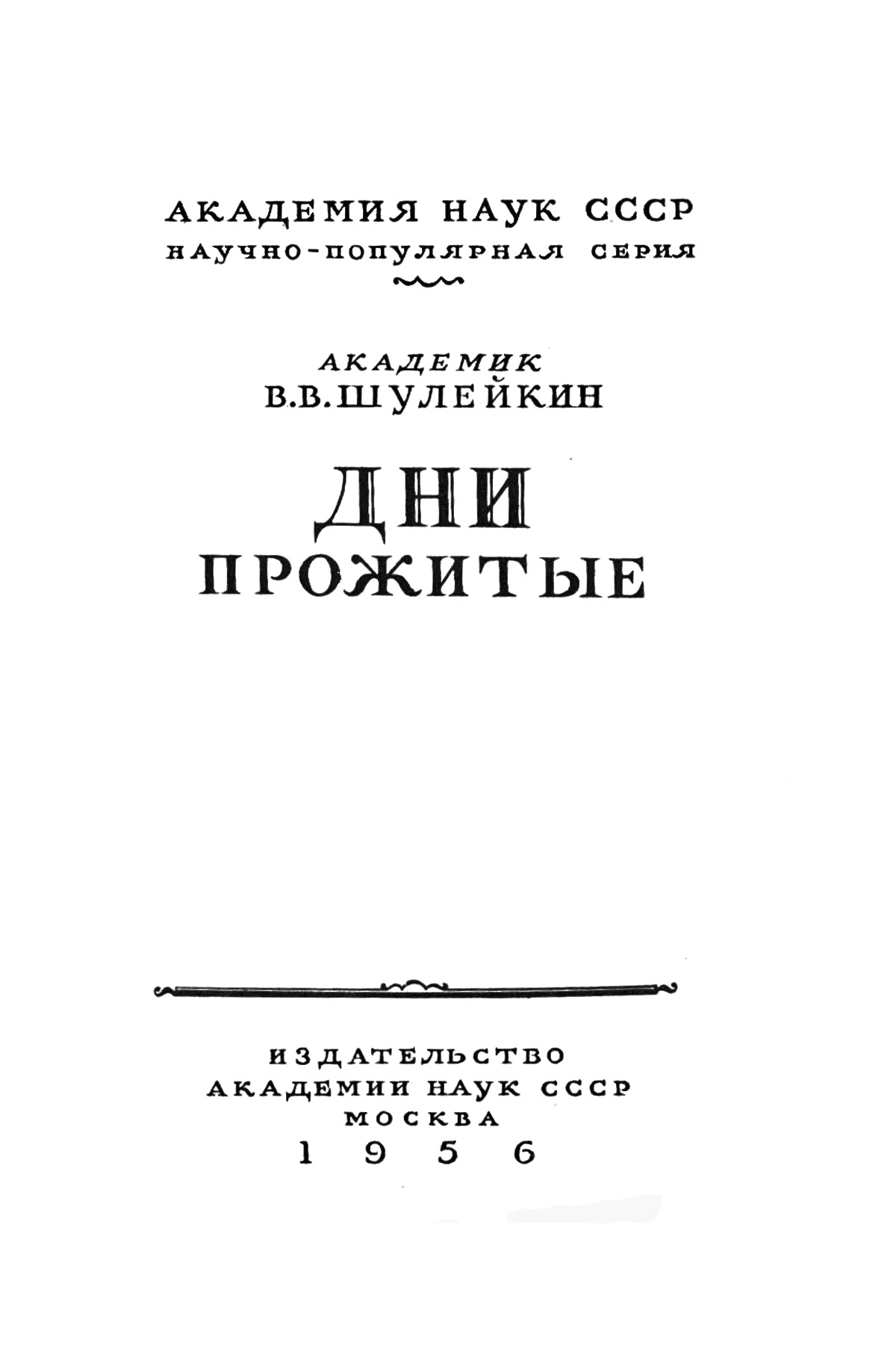 Академик Шулейкин В.В. Дни прожитые. Изд-во АН СССР, 1956.