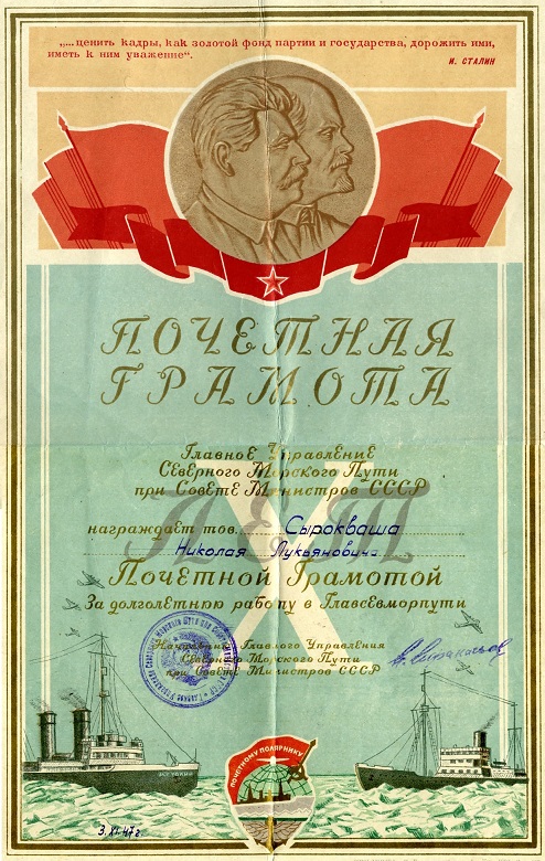 Н-362 Сырокваше зпт Аккуратову тчк 13 ноября выполняя рейс юго-восточной части Карского моря вследствие отказа трех моторов на участке Ямал — Амдерма Титлов произвел вынужденную посадку на самолете «Кондор»