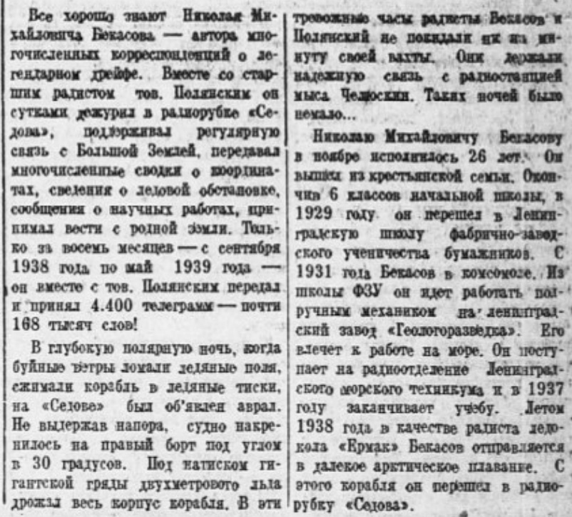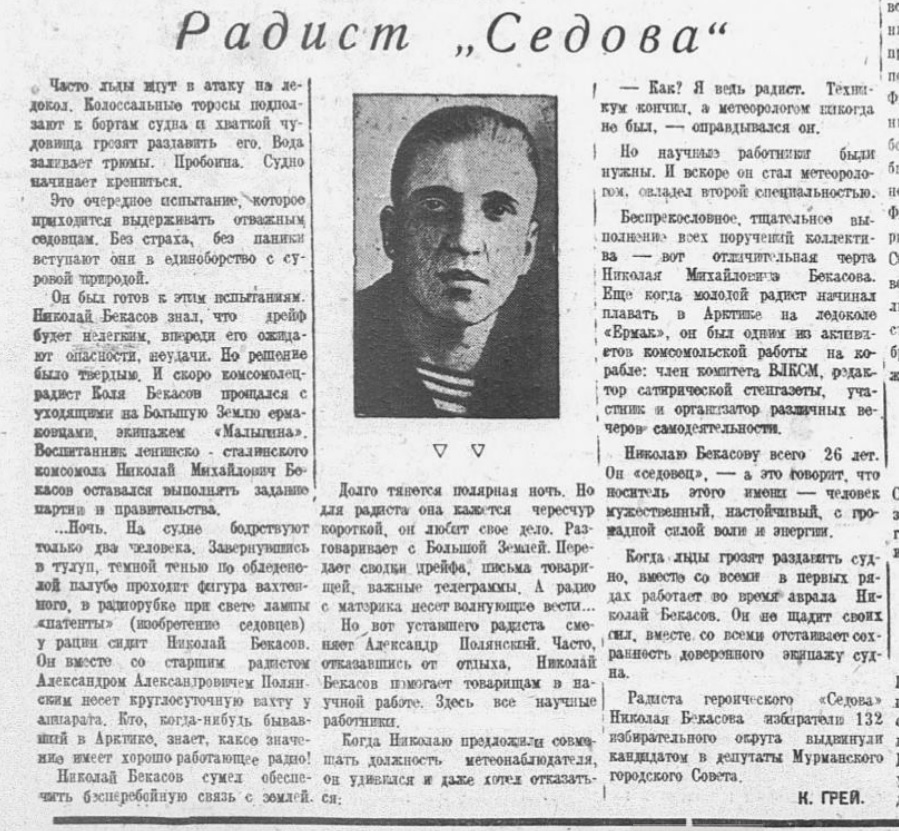 Бекасов Николай Михайлович – радист ледокольного парохода «Георгий Седов» Главсевморпути.