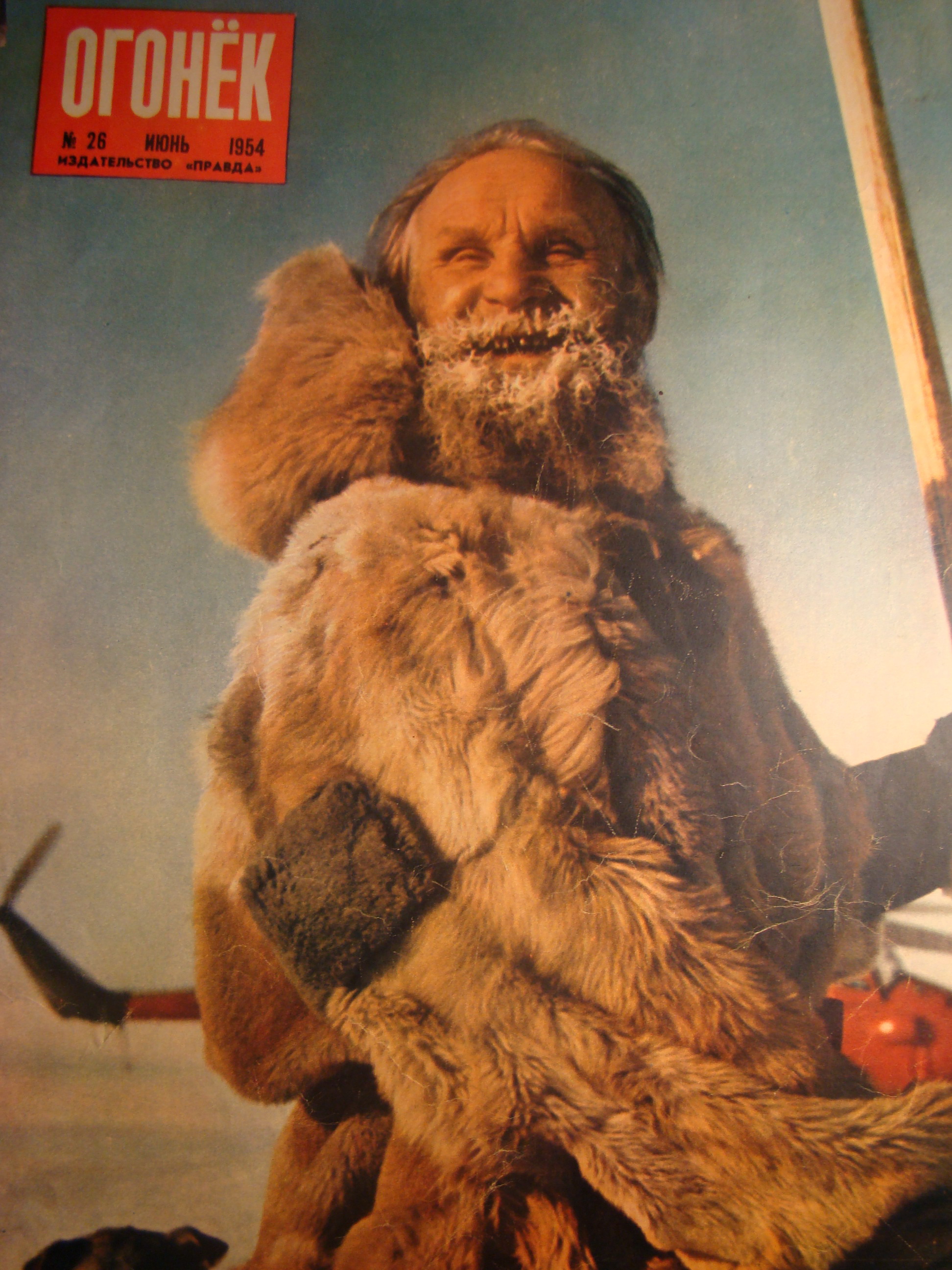 Каюр этот, Кузнецов, старожил Диксона - очень колоритный дед, он и в альбоме "В центре Арктики" есть, и на обложке "Огонька" 54 года: