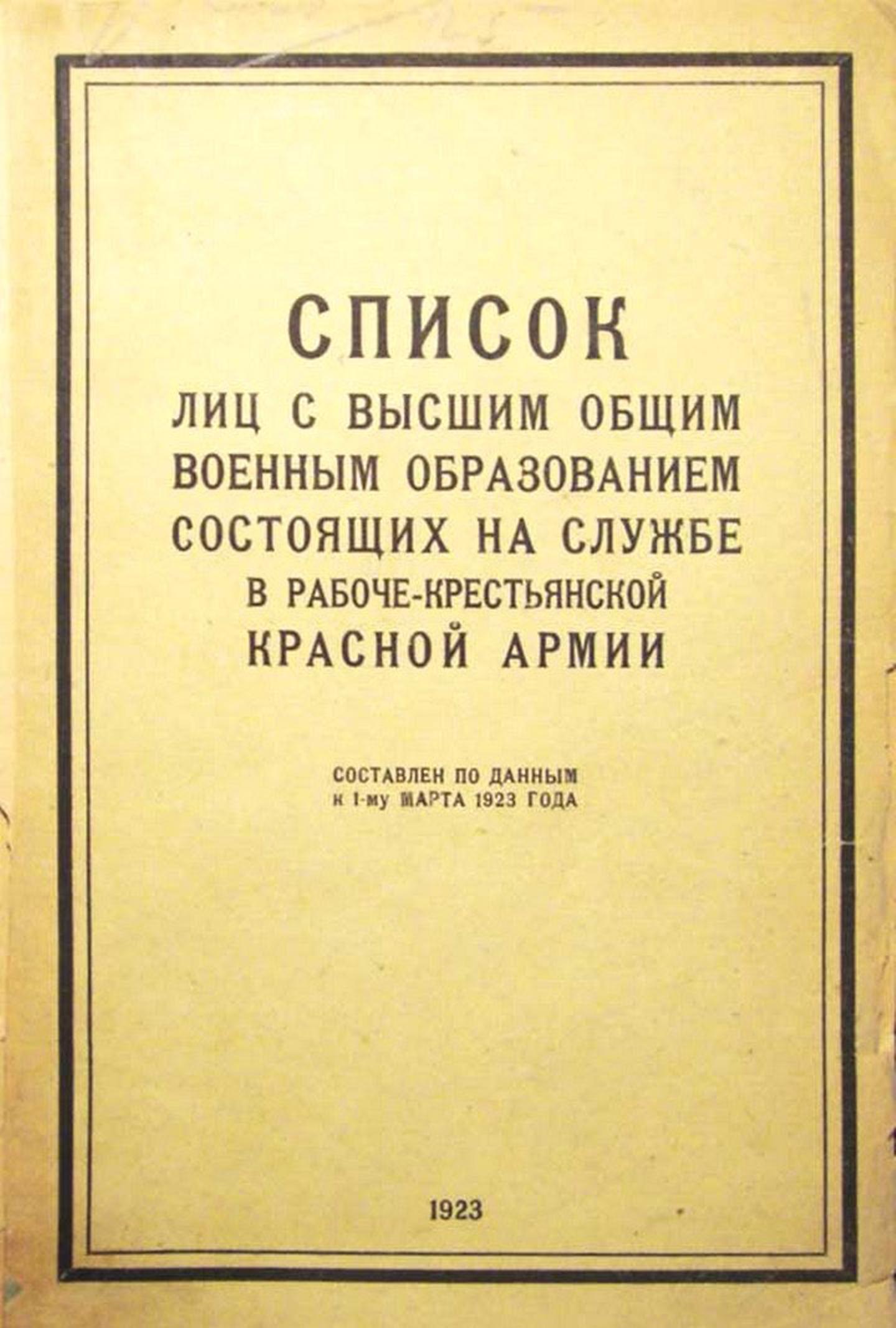 Ист.: Список лиц с высшим общим военным образованием состоящих на службе в Рабоче-Крестьянской Красной Армии. Составлен по данным к 1-му марта 1923 года., Штаб РККА, 1923