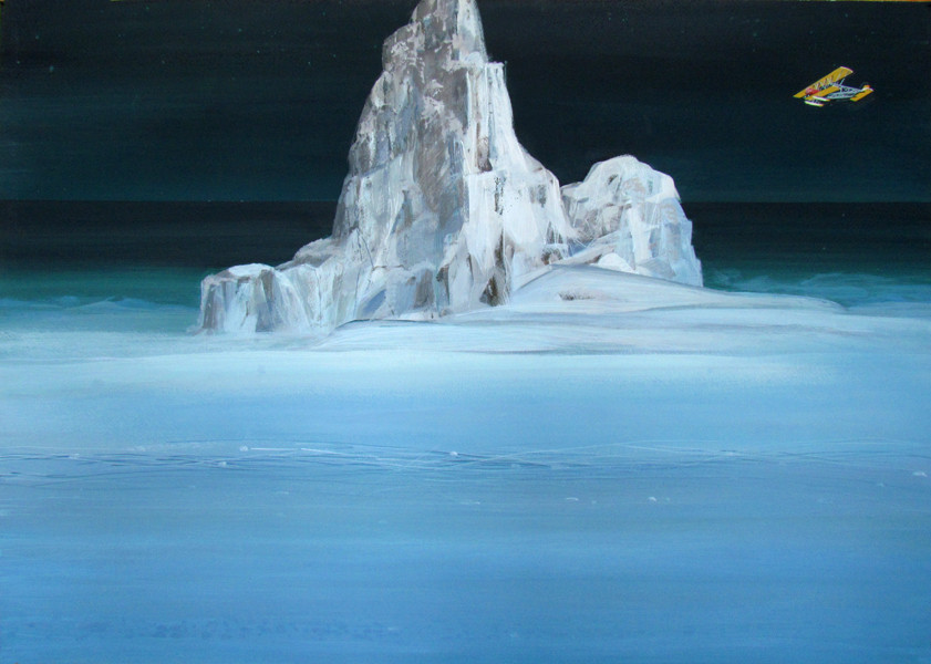 Именно в это время судьба свела смельчаков с писателем и художником Степаном Писаховым. И он сохранил на картине исторический факт: на совершенно, казалось бы, безжизненном берегу ледового архипелага, который художник Борисов в разговоре с Владимиром Русановым назвал «вратами Ада», как из сказки, появился символ тогдашней цивилизации, чудо техники - самолет Яна Нагурского.