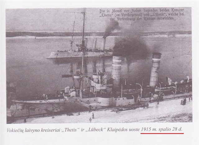 Немецкие крейсера «Тетис» и «Любек» в Клайпеде. 28 января 1915 г.