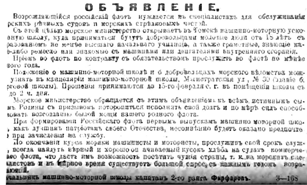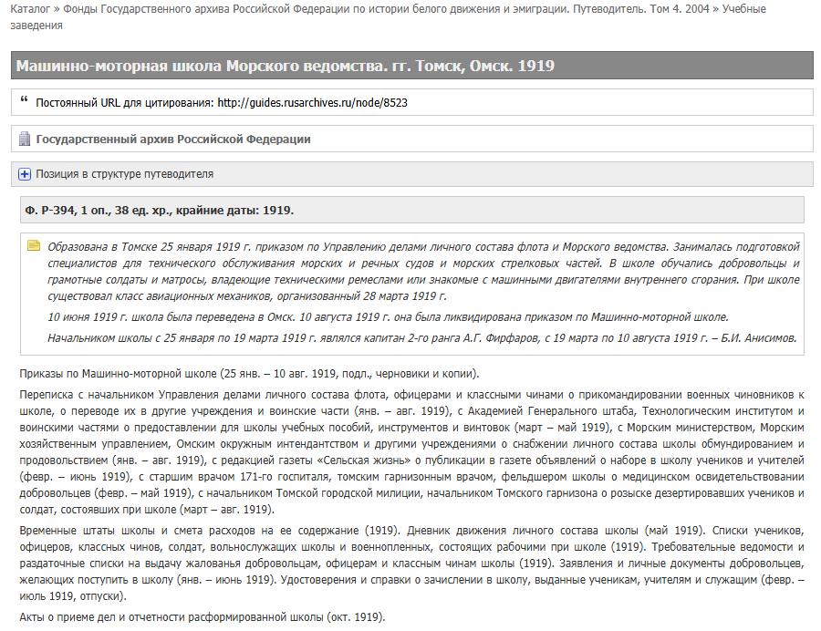 С 25 января по 19 марта 1919 г., начальник машинно-моторной школы Морского ведомства в г. Омске (капитан 2 ранга).