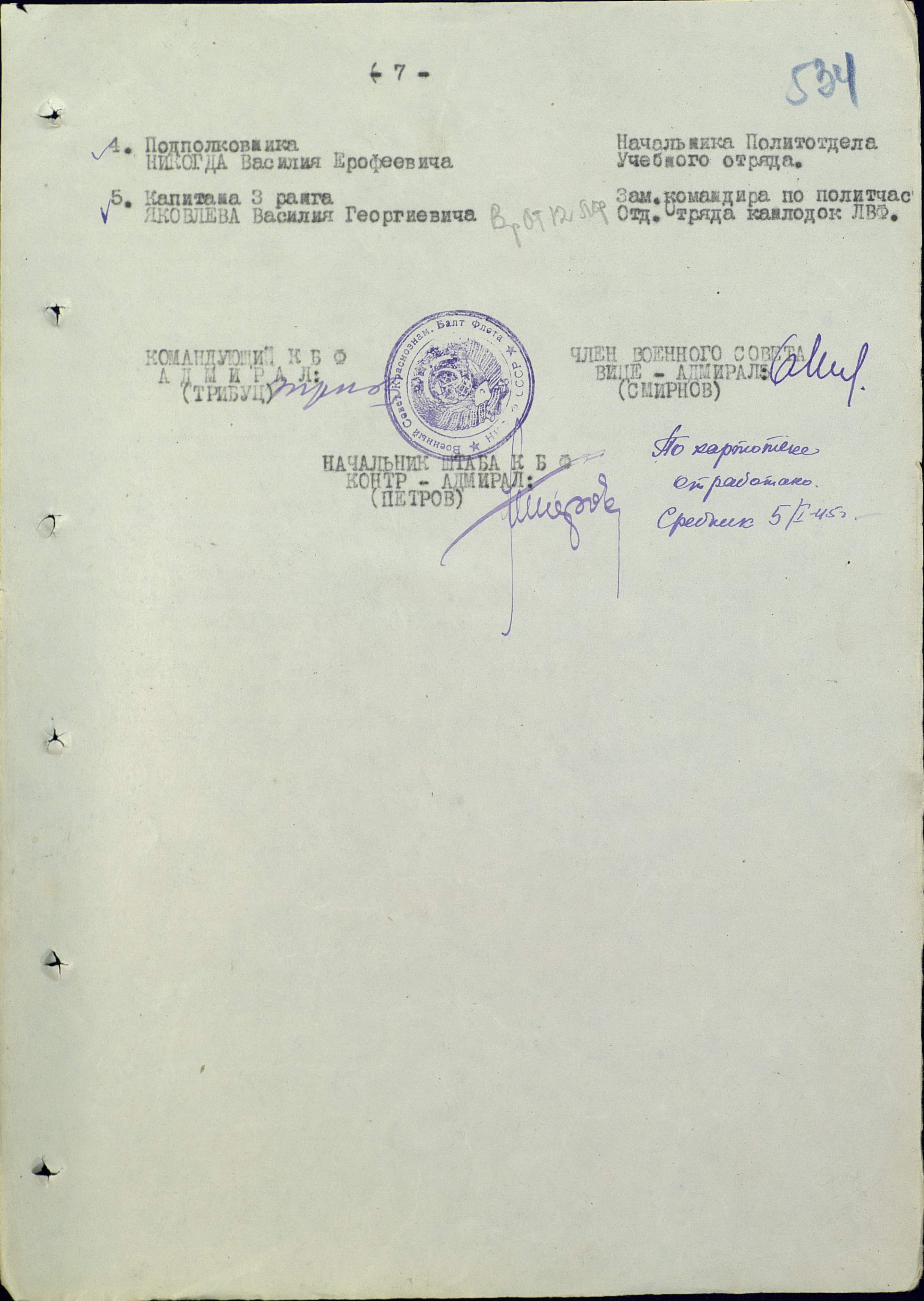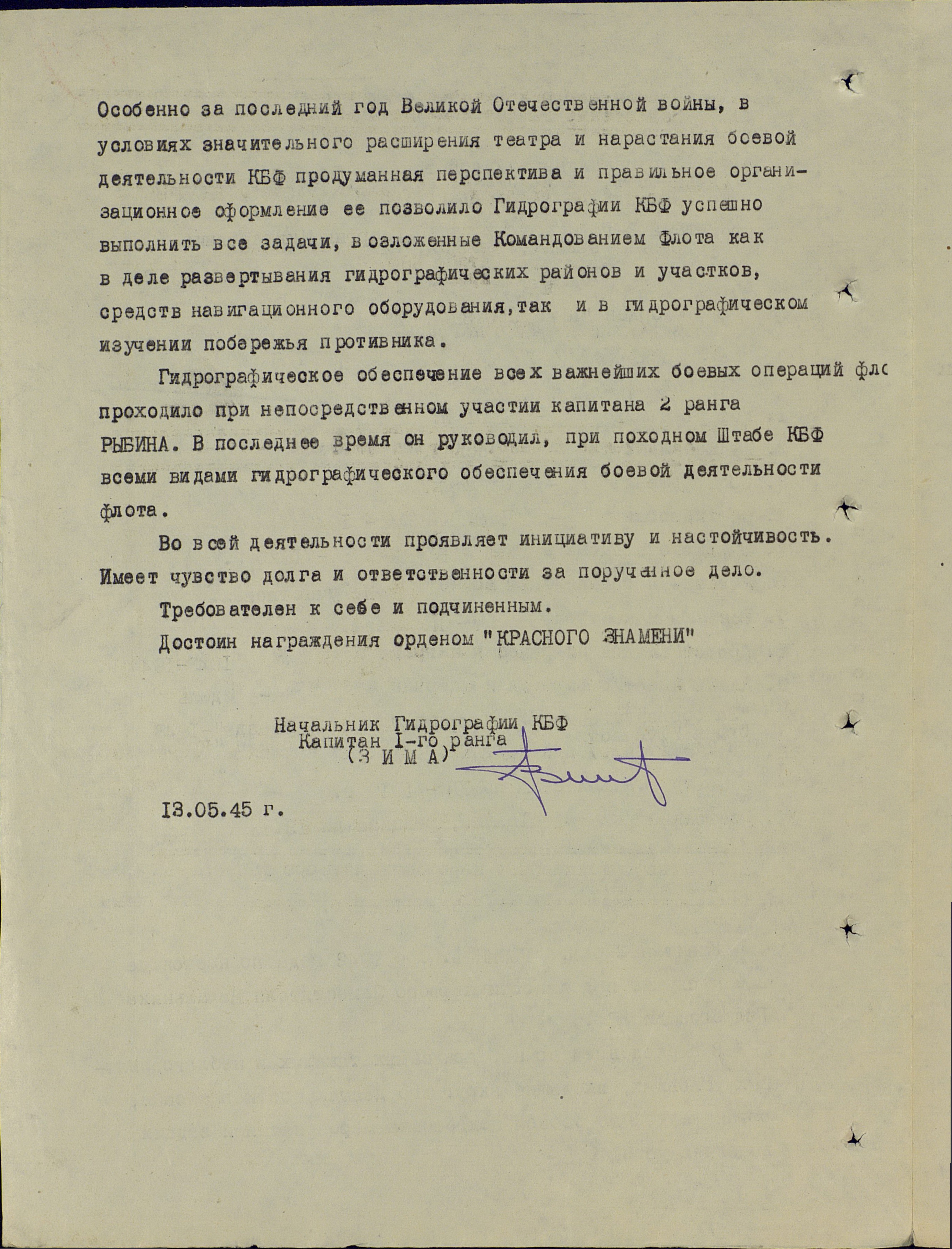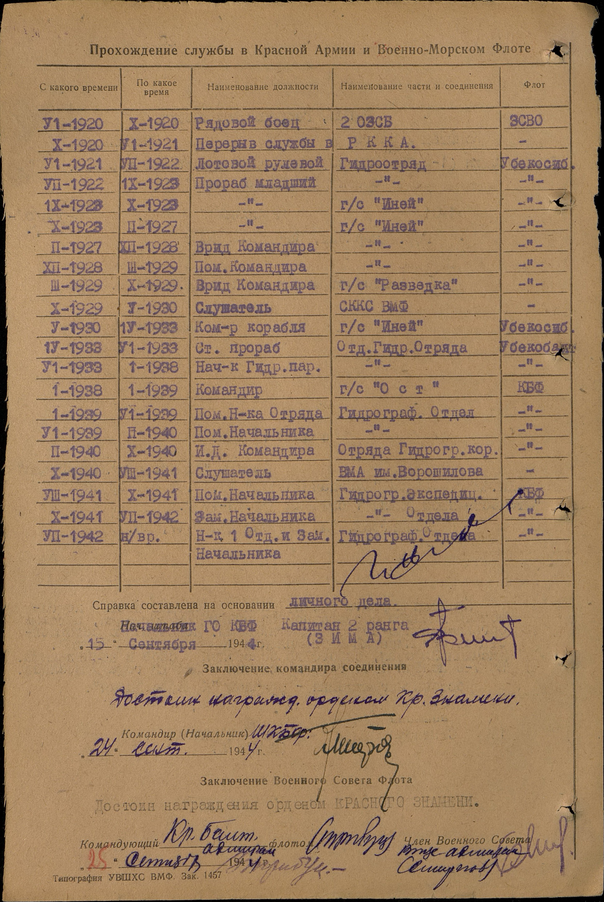 Н-к. 1 Отд. и Зам. Начальника Гидрограф. Отдела КБФ