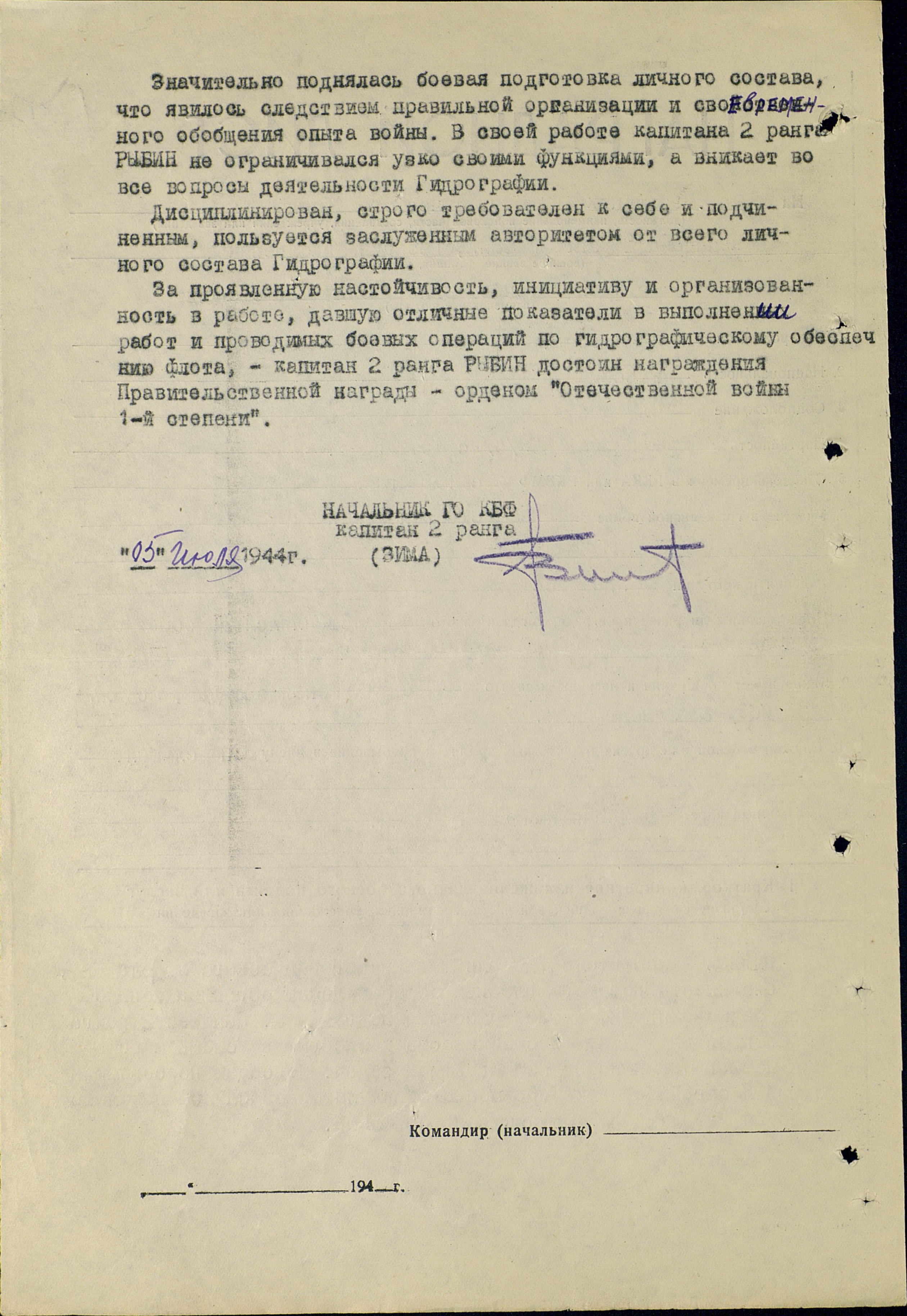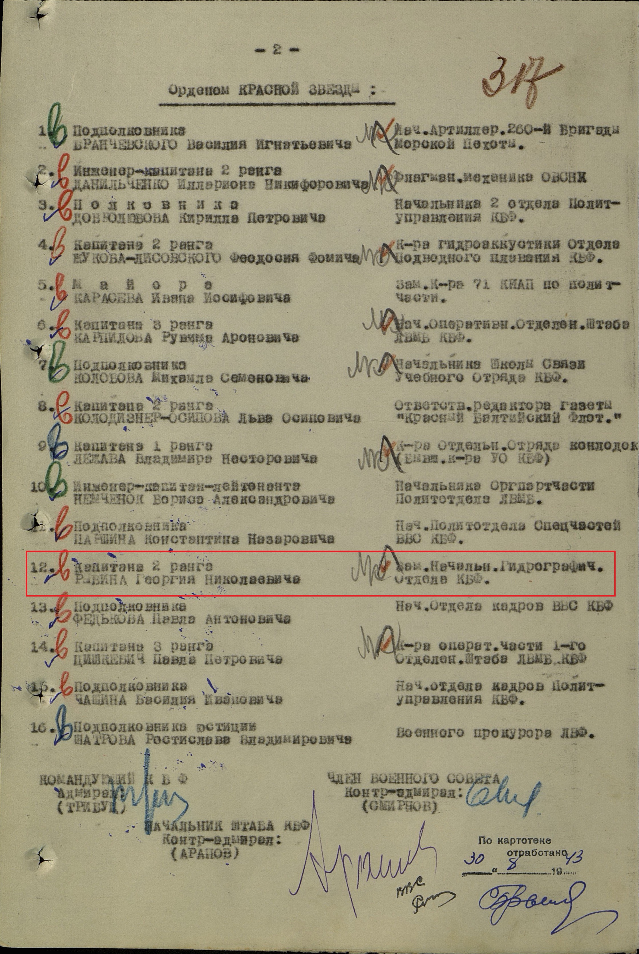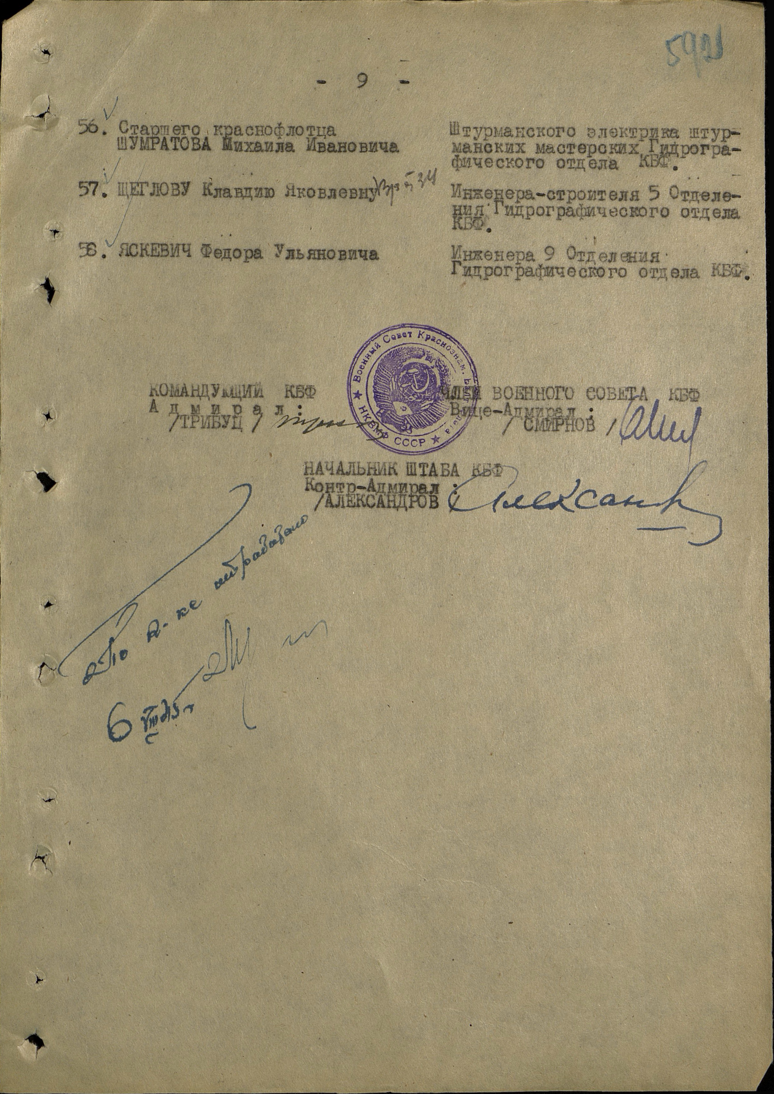 Н-к. 1 Отд. и Зам. Начальника Гидрограф. Отдела КБФ