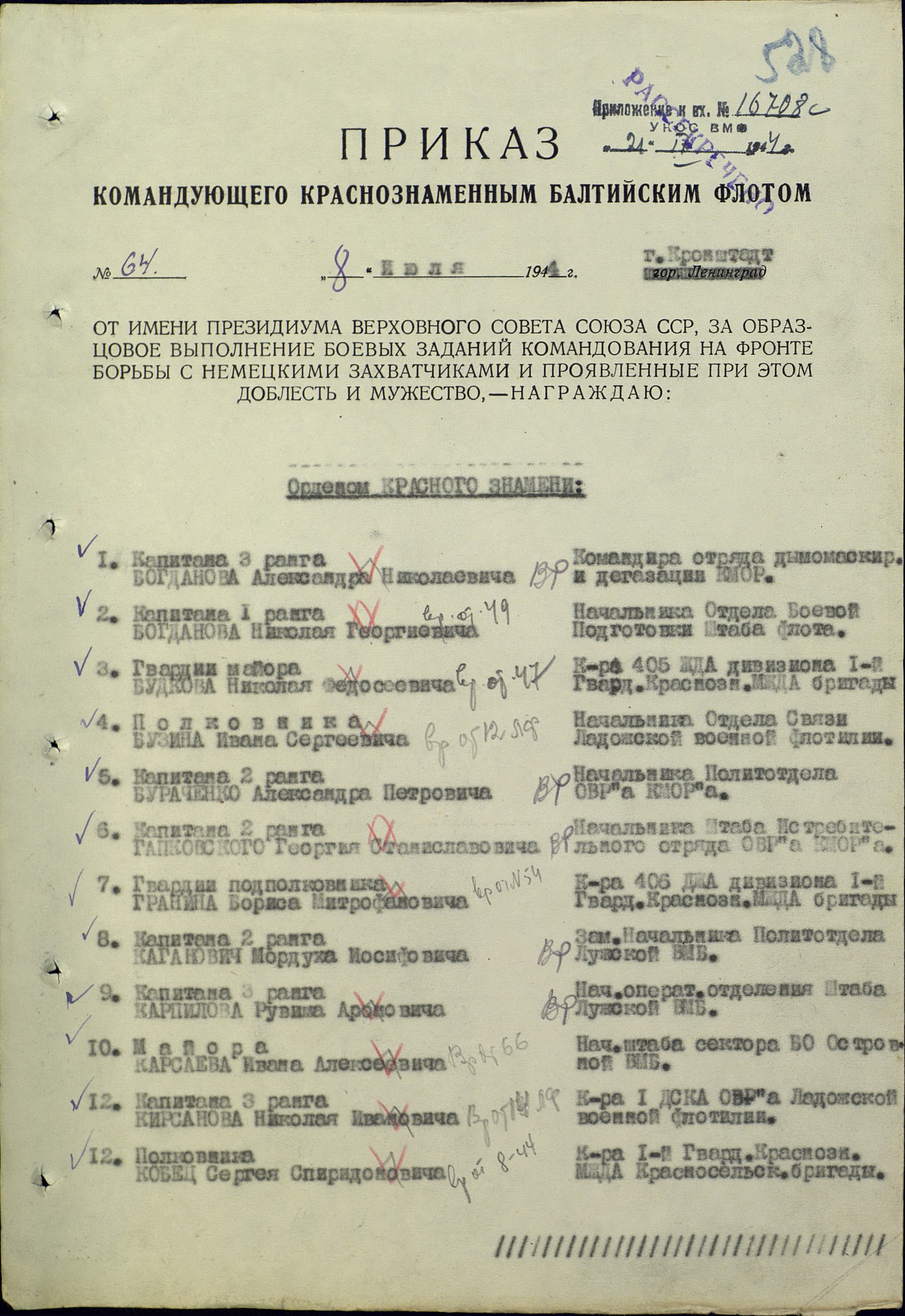 Приказ или указ: Архив ЦВМА фонд 3 опись 1 единица хранения 779