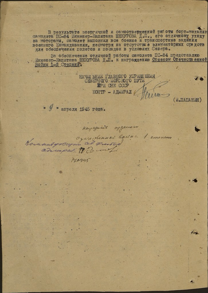 — Мне сказал командир: «Водопьянов просит разрешения взять вас в экспедицию. Командование согласилось. А как вы?» Как ответить на такой вопрос? Разве найдешь подходящие слова! Сказал по-обычному: «Даю согласие, товарищ командир», а у самого сердце готово разорваться от радости. Два часа назад я увидел в управления Севморпути список участников экспедиции, и в нем мое имя — Шекуров Диомид Павлович.