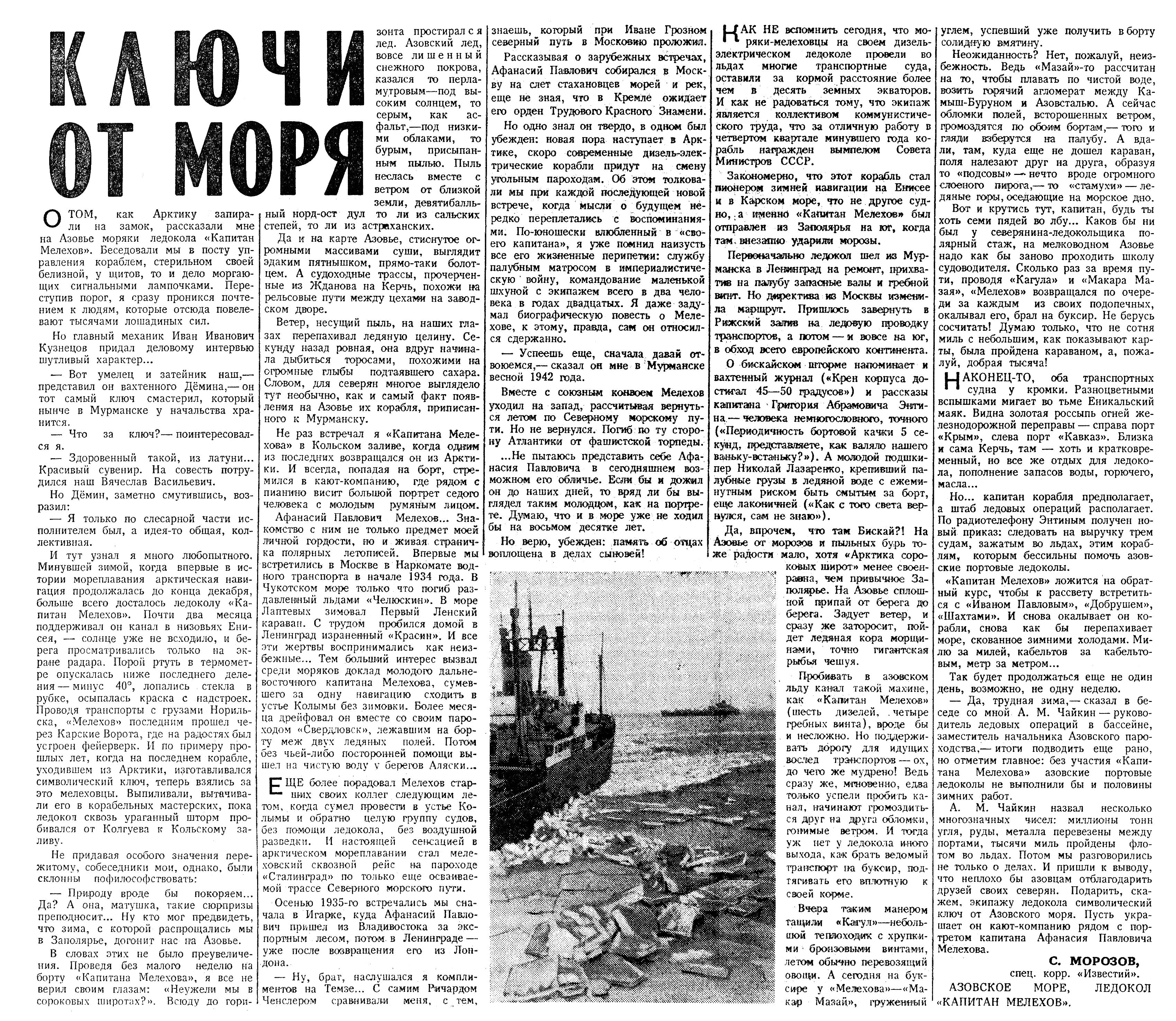 В последующие годы Мелехов водил «Сталинград» из Ленинграда во Владивосток, из Владивостока в Мурманск, из Архангельска в Тикси и обратно. Имя его встало в один ряд с именами выдающихся арктических капитанов.