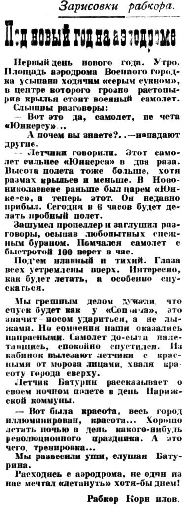 Из заметки следует, что в начале 1925 года Батурин находился в Новониколаевске в качестве военного летчика.