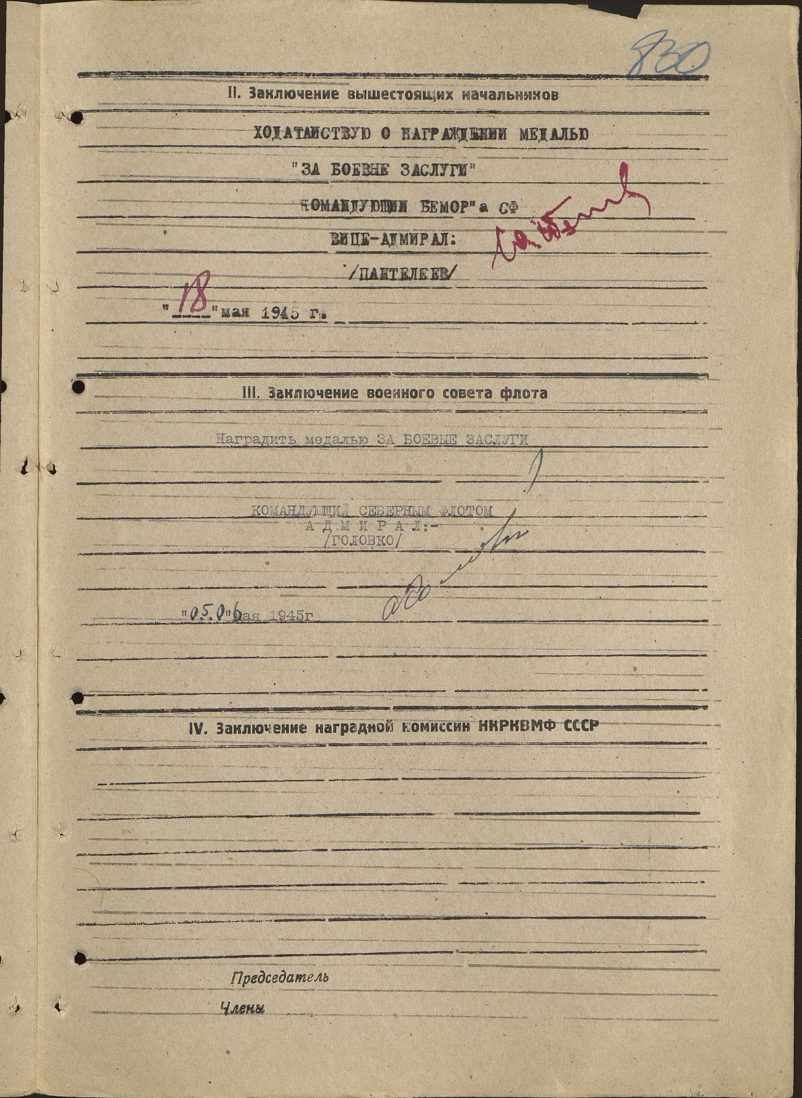 Представление на награждение СФ №: 42 от: 31.05.1945