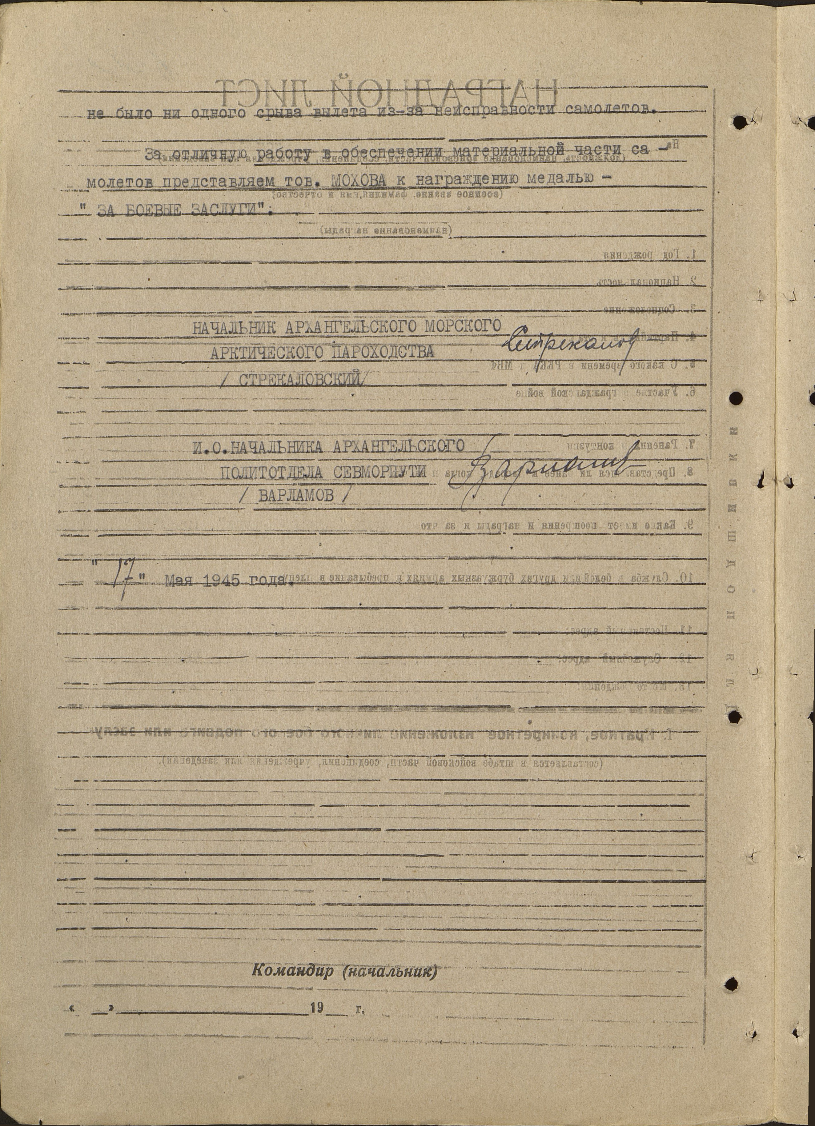 Экспедиция «Север-4» закончилась 16 мая 1949 г. беспосадочным перелётом в экипаже будущего Героя Советского Союза В.Н.Задкова на самолёте Пе-8 с базы № 5 (88° с.ш., 170° з.д.) через Северный полюс в г.Москву. В этом полёте выполнял роль бортмеханика корабля. Указом Президиум Верховного Совета СССР от 6 декабря 1949 г. за исключительные заслуги перед государством в деле изучения и освоения Арктики присвоено звание Героя Социалистического Труда с вручением ордена Ленина и золотой медали «Серп и Молот».