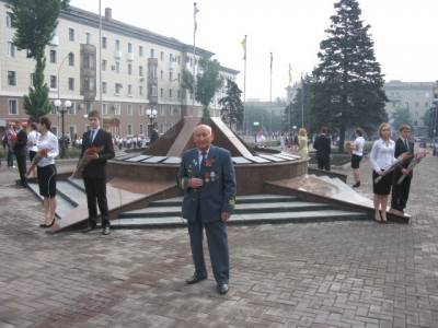 Памятная плита в честь Героя (крайняя справа) на Аллее Героев в г.Енакиево.