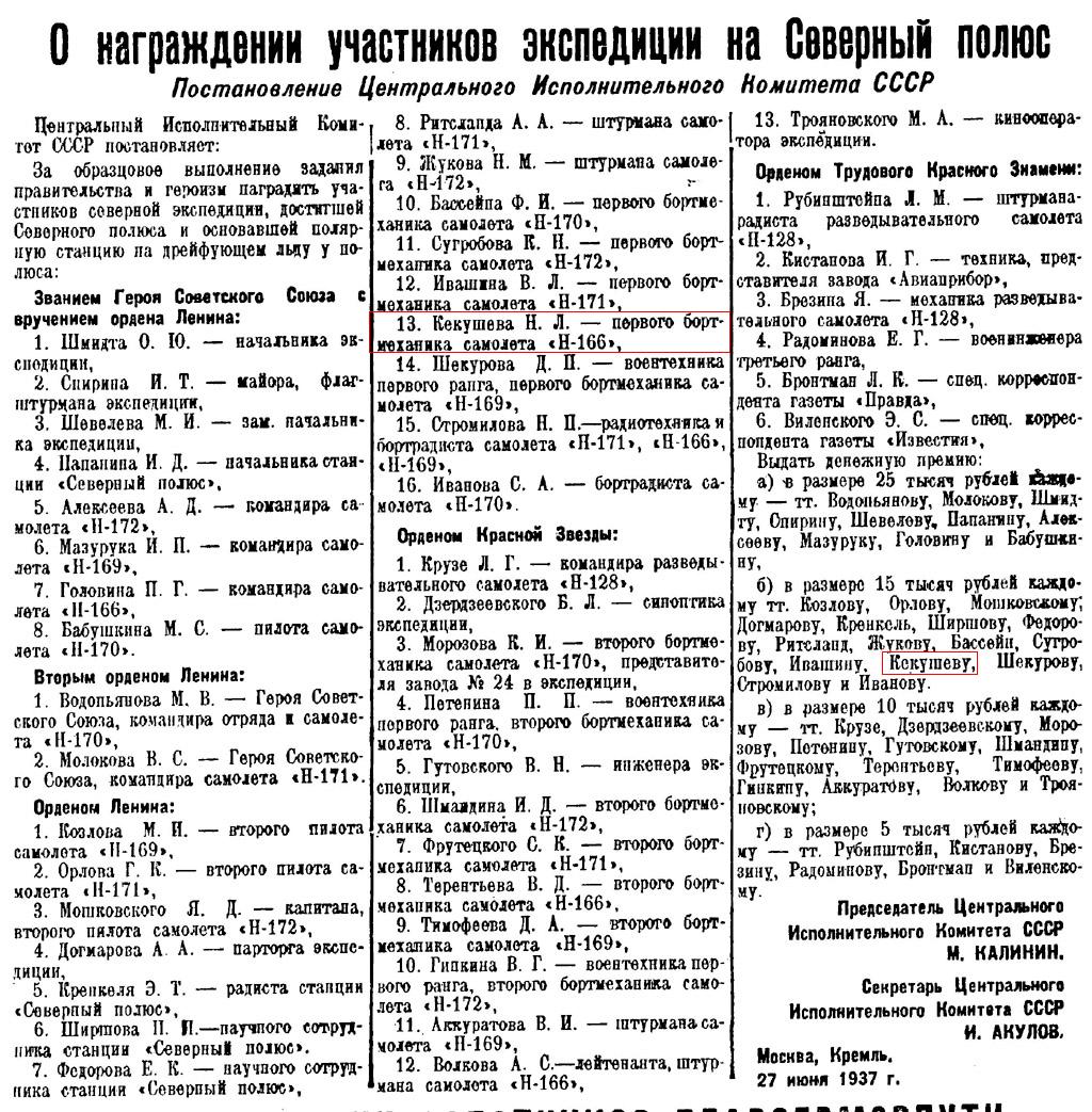 В 1938 году получил значок за полет 1 000 000 км и значок Почетного полярника.