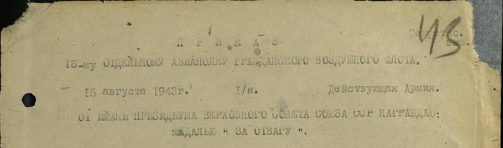 Приказ подразделения №: 1/н от: 15.08.1943 13 оап ГВФ