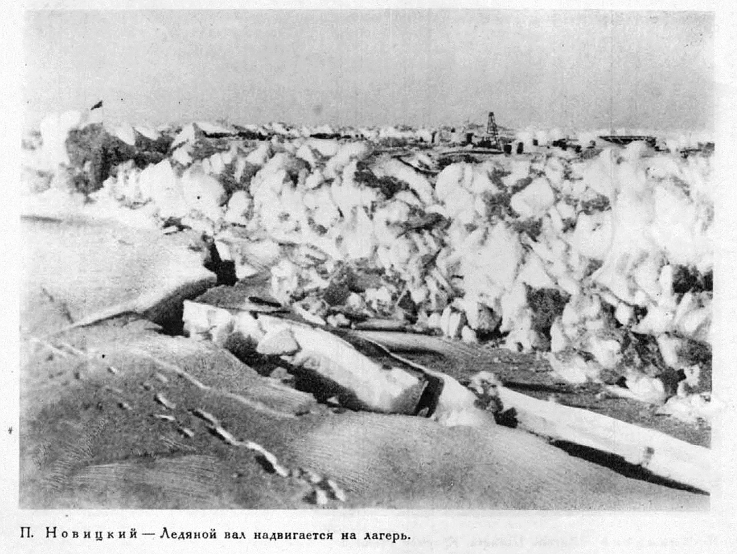 В этот день я был занят зарядкой леечных кассет. Неожиданно я услышал необычайные звуки — пулеметною дробью летели заклепки на левом борту ледокола, а затем послышался гул отдаленной артиллерийской стрельбы. Это ледяные валы надвигались на нас.