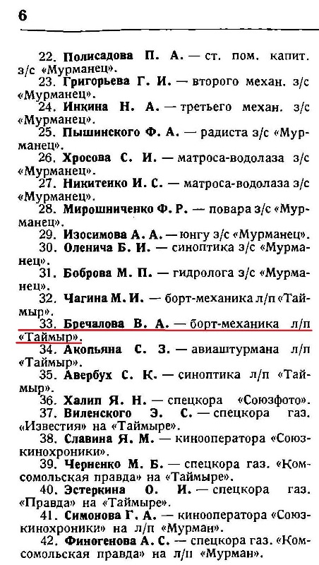 33. Бречалова В. А. — борт-механика л/п «Таймыр».