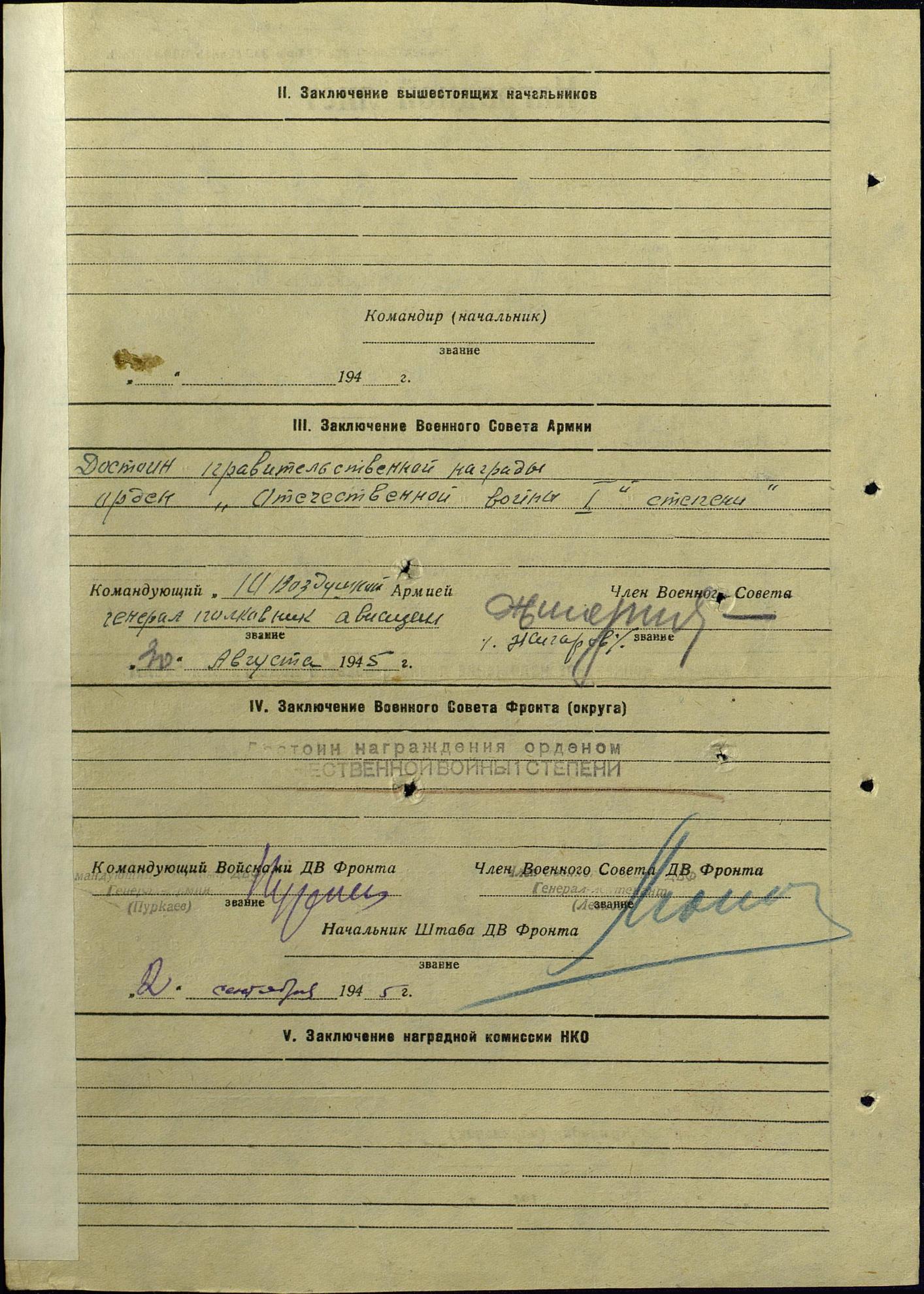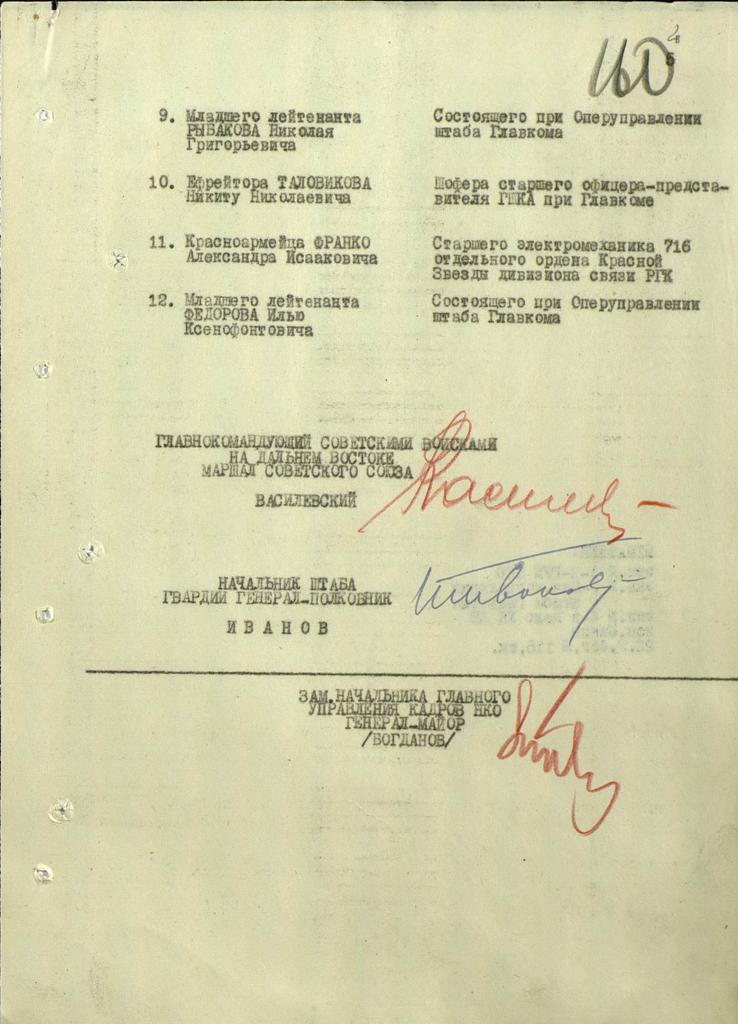 Фронтовой приказ № 31/н от: 23.09.1945 ВС Дальневосточного фронта