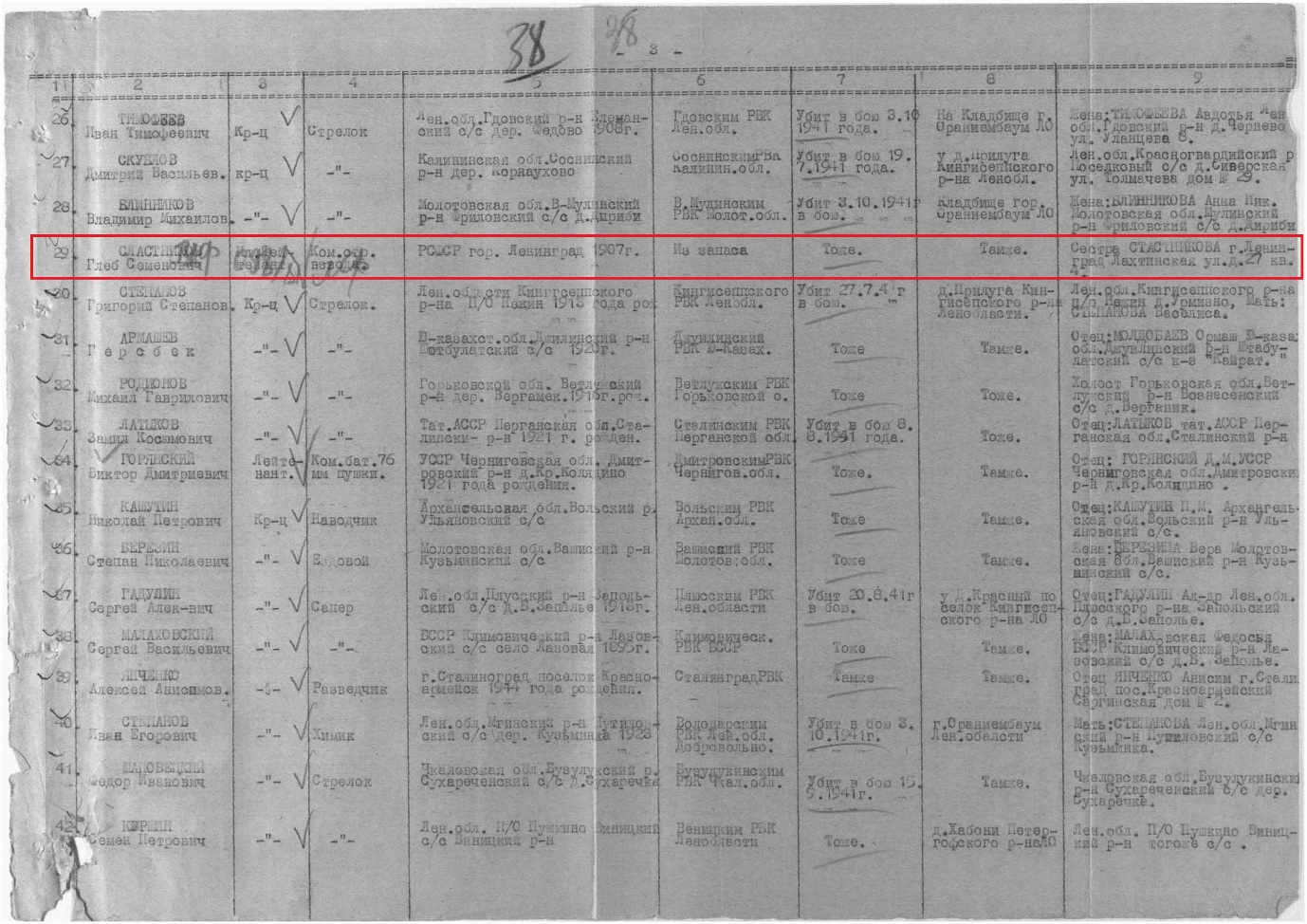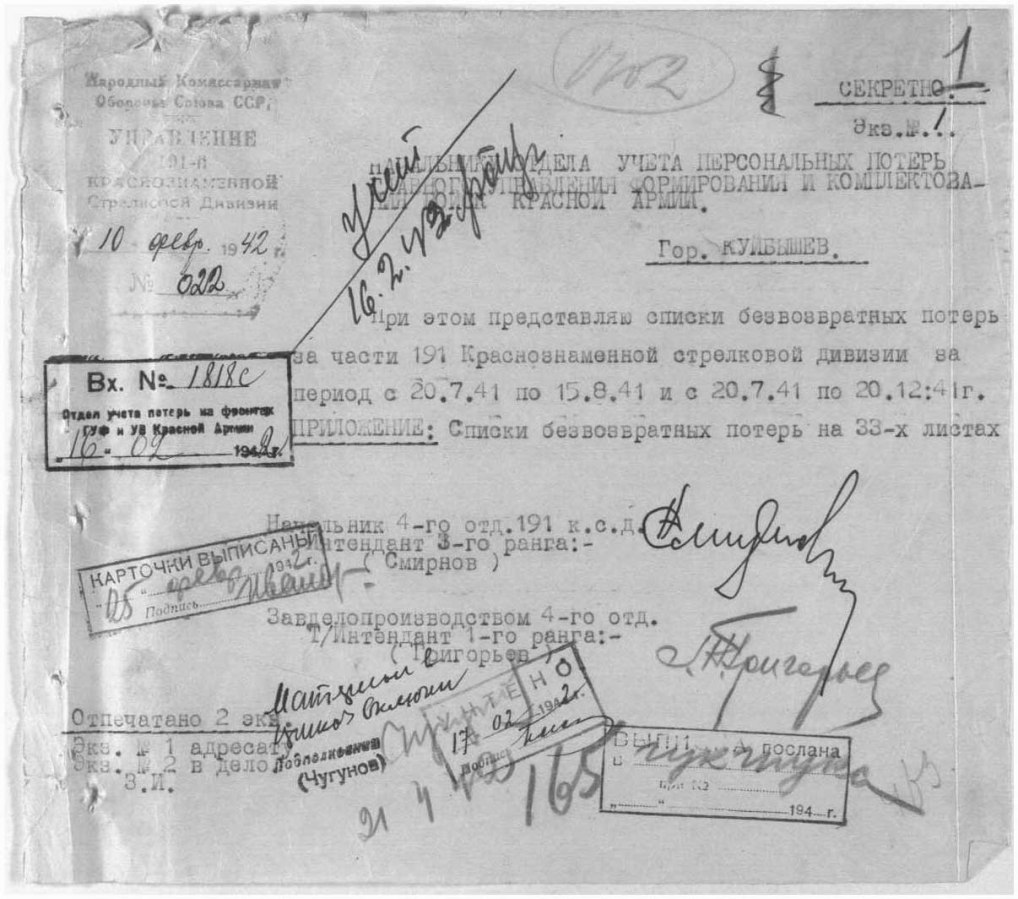 Информация из донесения о безвозвратных потерях