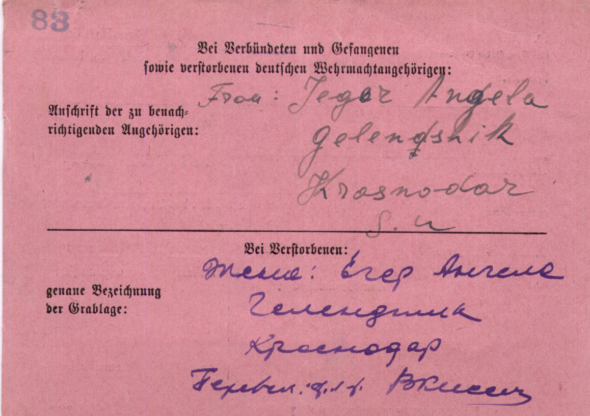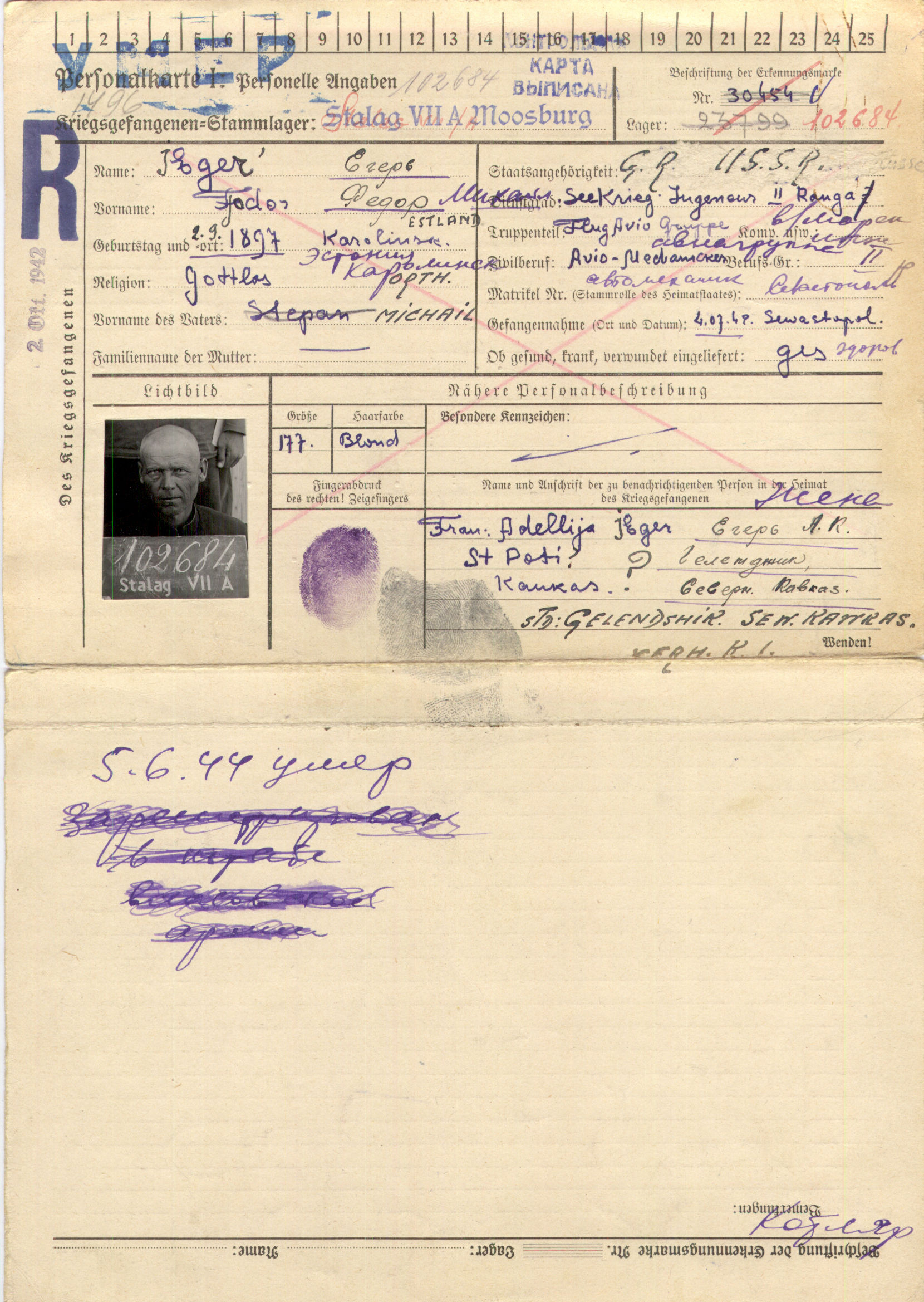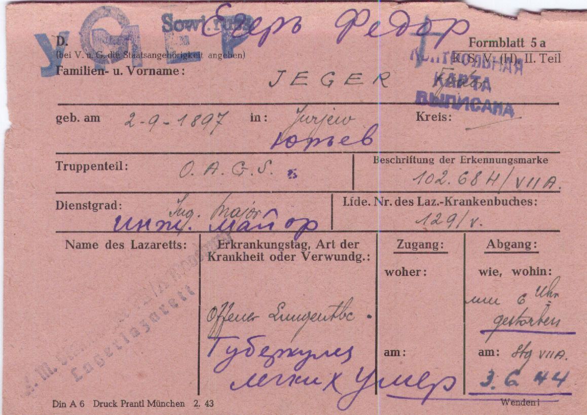 Дата рождения 02.09.1897 г., дата смерти 03.06.1944 (похоронен 05.06.1944) г.