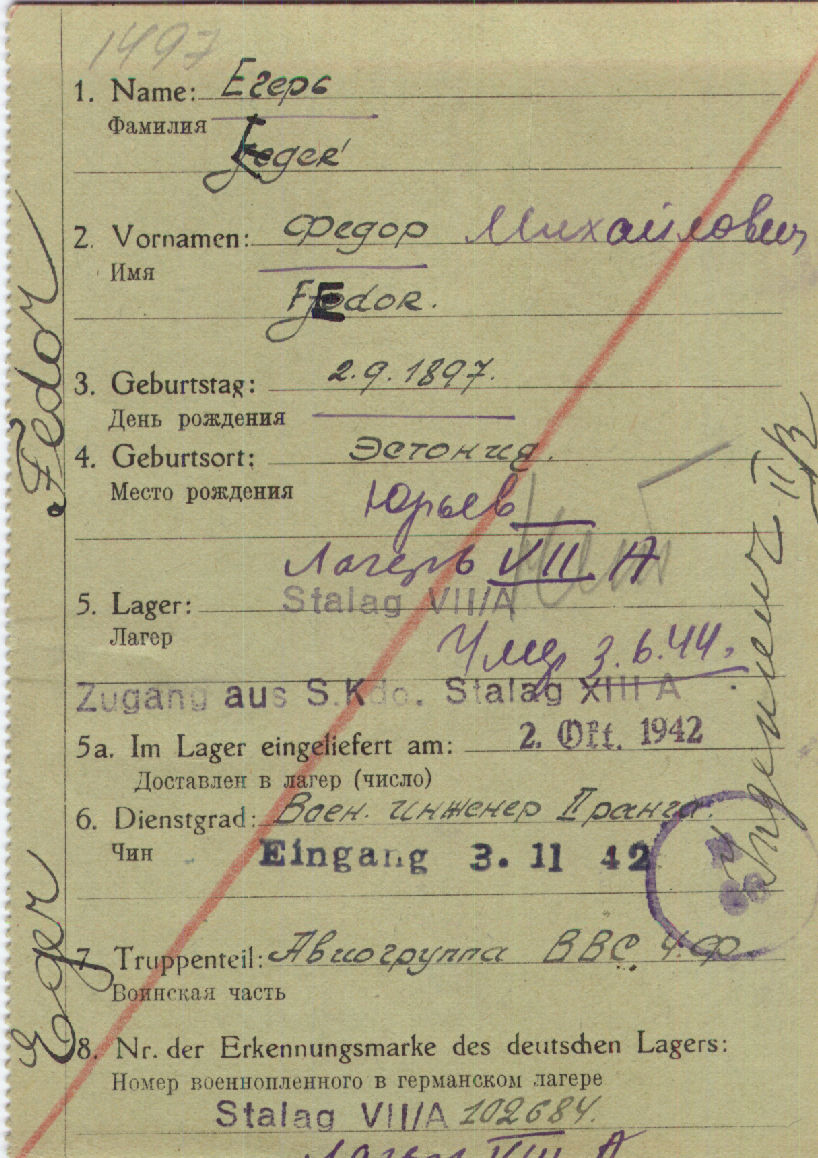 Номер фонда источника информации Картотека военнопленных офицеров