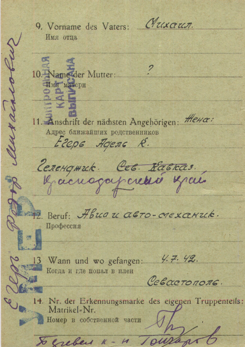 Информация о военнопленном
