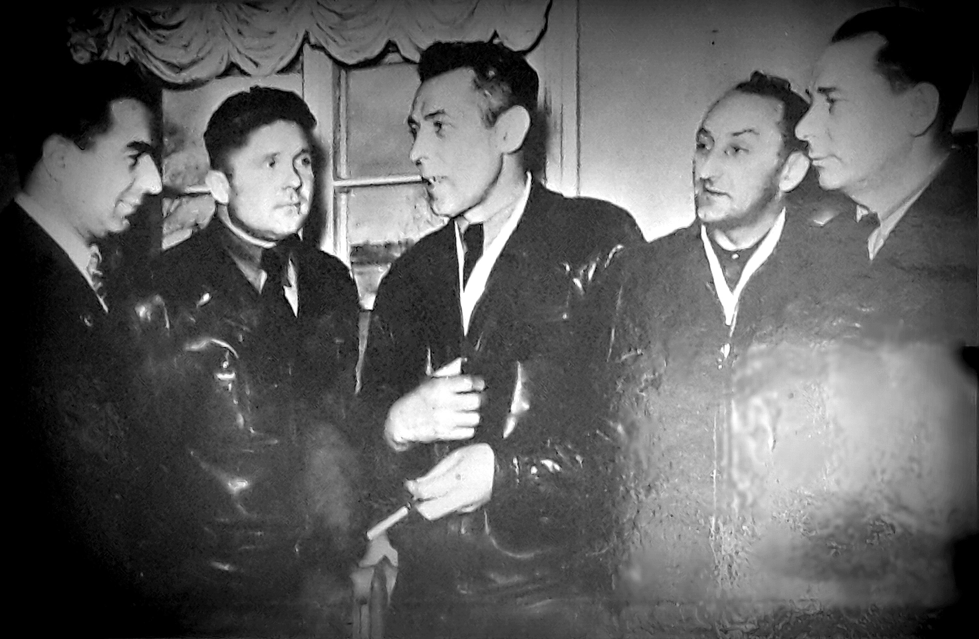 Эту фотографию И.И.Иноземцева (второй слева), о которой вспоминает А.В.Милованов, с Героем Советского Союза И.И.Черевичным (в центре), а также с лётчиком А.А.Кашем (второй справа), штурманом Д.Н.Морозовым (крайний слева) и бортрадистом Героем Социалистического Труда Г.М.Патарушиным (крайний справа) удалось недавно найти в Центральном доме авиации и космонавтики (г. Москва). Место и время съёмки – очевидно, после 1-й КАЭ в столице в 1958 году.