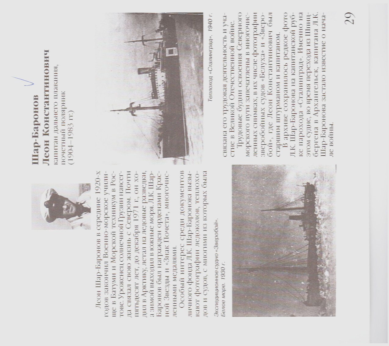 ПЛАВАНИЕ ЭКСПЕДИЦИОННОГО СУДНА «ЗВЕРОБОЙ» В КАРСКОМ МОРЕ В 1929 г. Л. К. Шар-Баронов