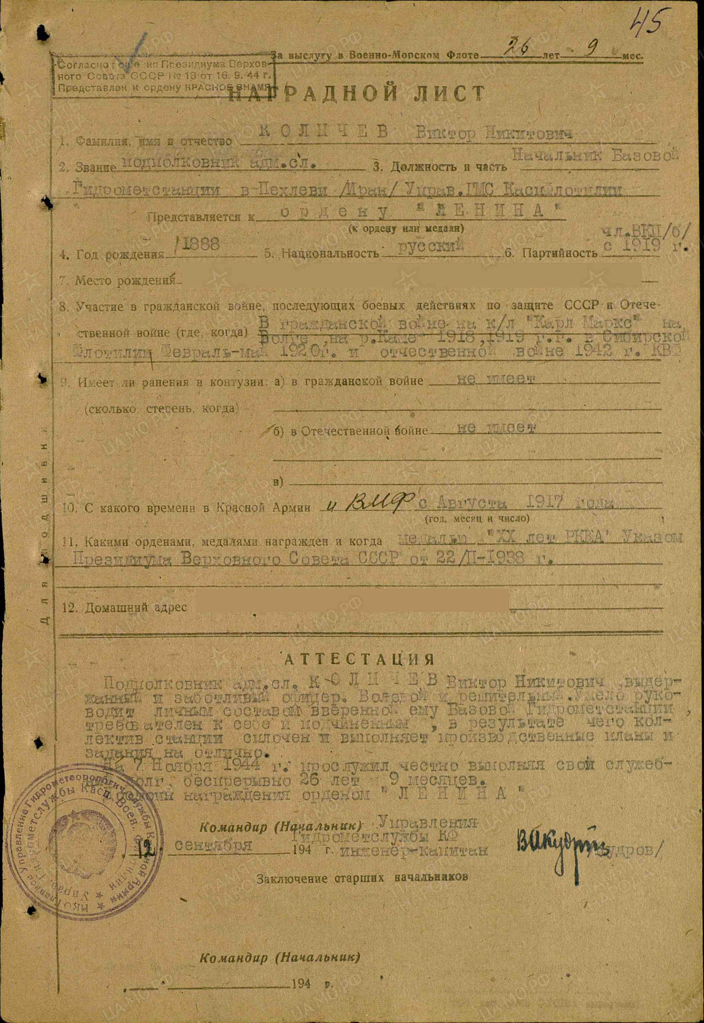 Колычев Виктор Никитович 1888 г.р.