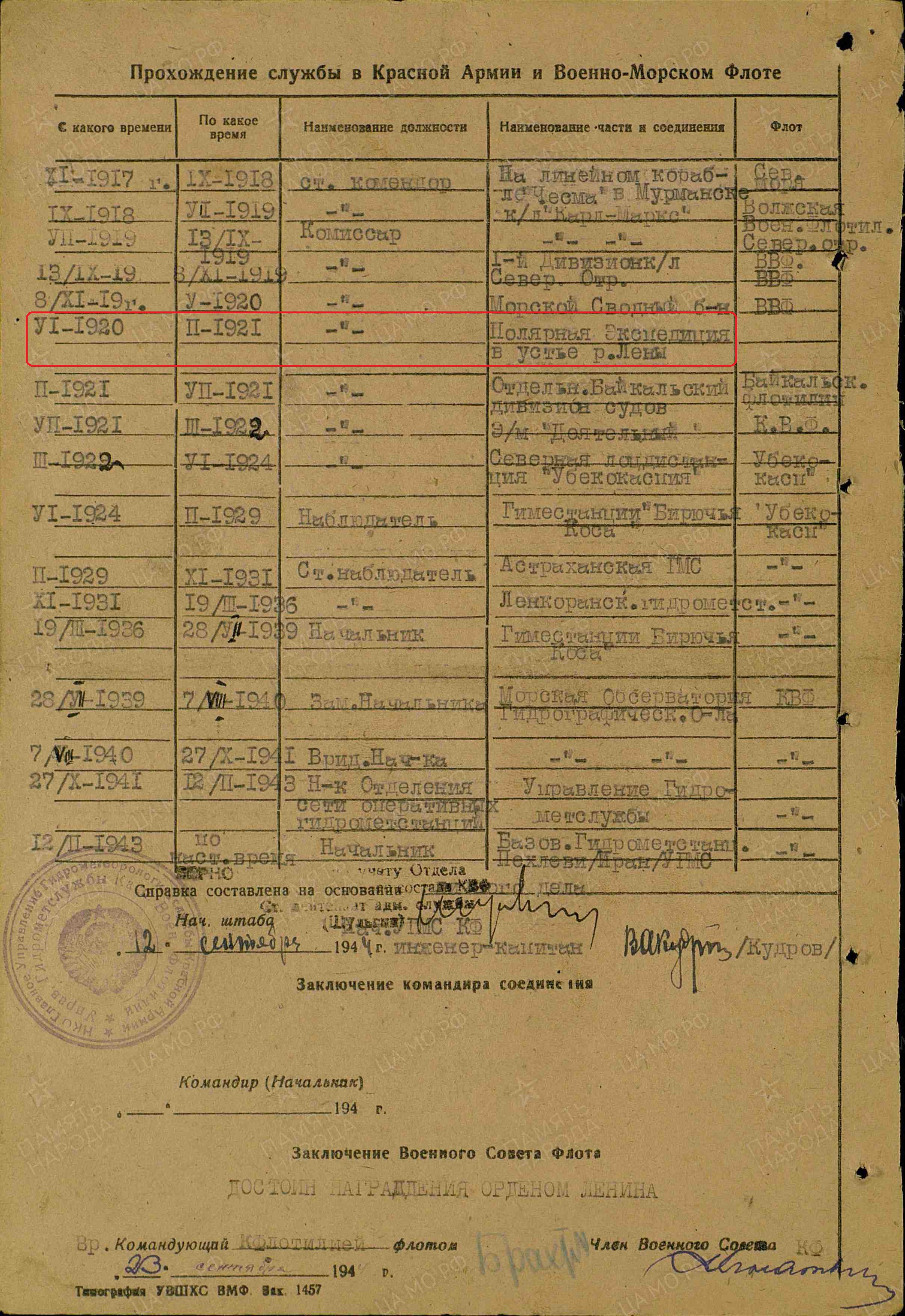 Архив: ЦВМА Фонд 3 Опись 1 Единица хранения 1202