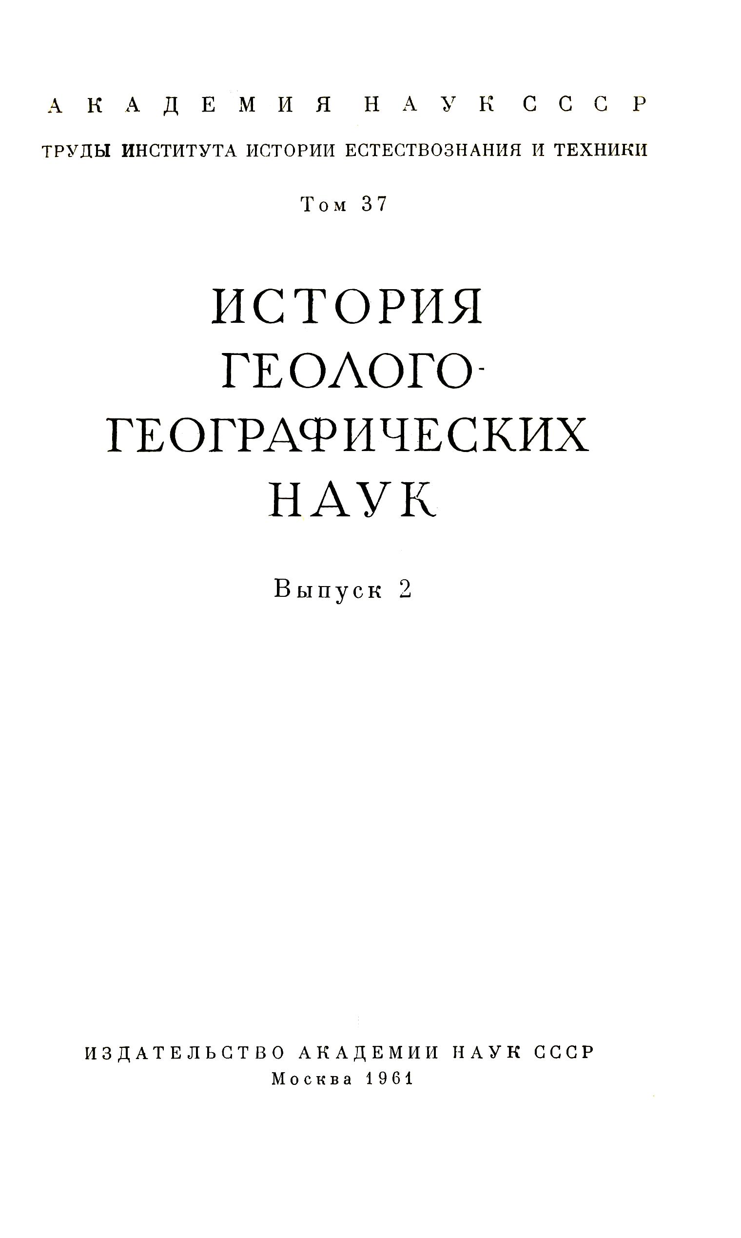 ИСТОРИЯ ГЕОЛОГО-ГЕОГРАФИЧЕСКИХ НАУК
