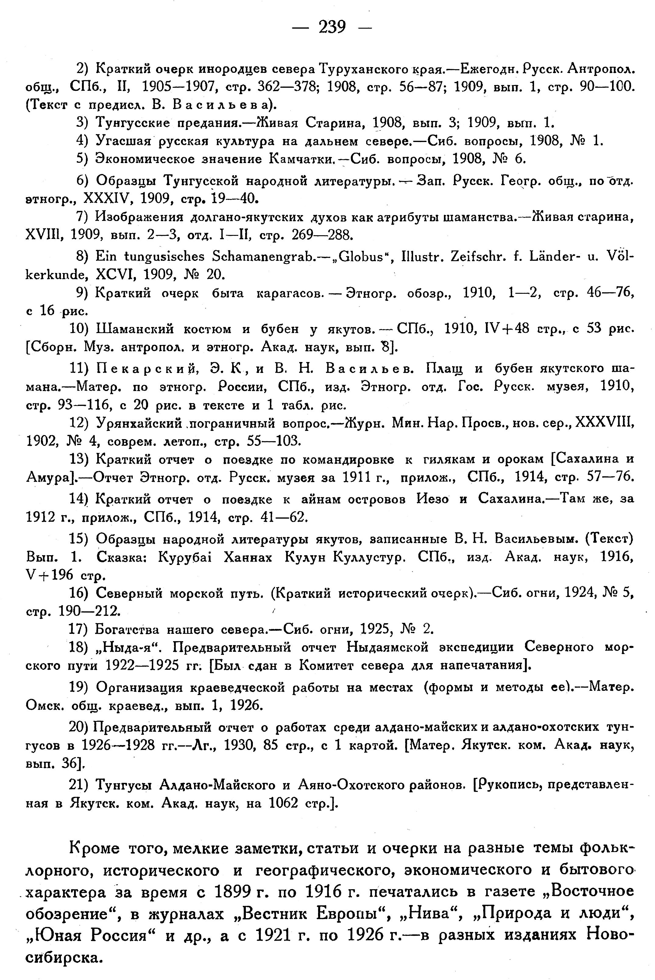 1) Любезно дополнен А. Ф. Шидловским.2) Краткий очерк инородцев севера Туруханского края. —Ежегодн. Русск. Антропол. общ., СПб., II, 1905-1907, стр. 362—378; 1908, стр. 56—87; 1909, вып. 1, стр. 90—100. (Текст с предисл. В. Васильева).