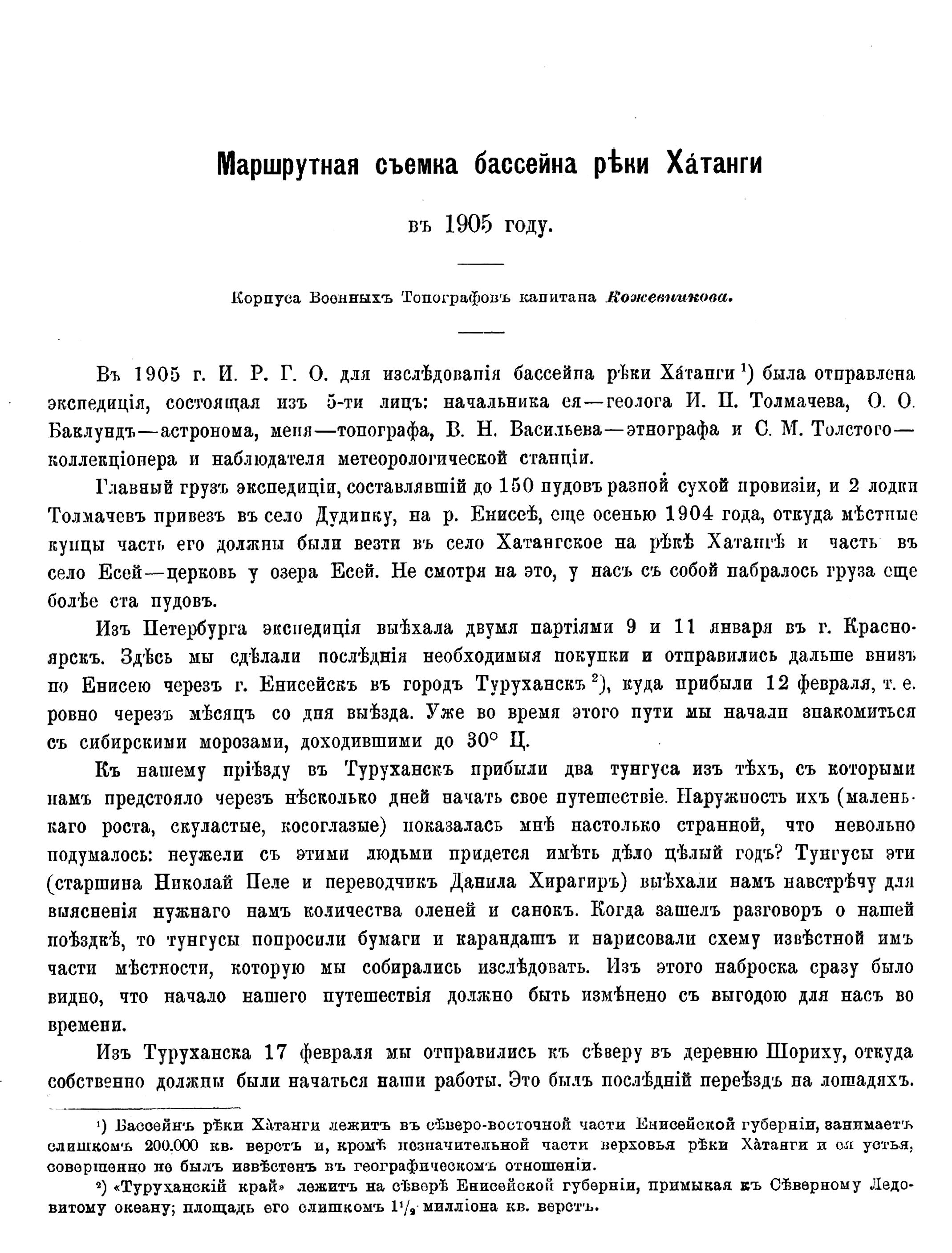 Маршрутная съемка бассейна реки Хатанги в 1905 году. Корпуса Военных Топографов капитана Кожевникова.