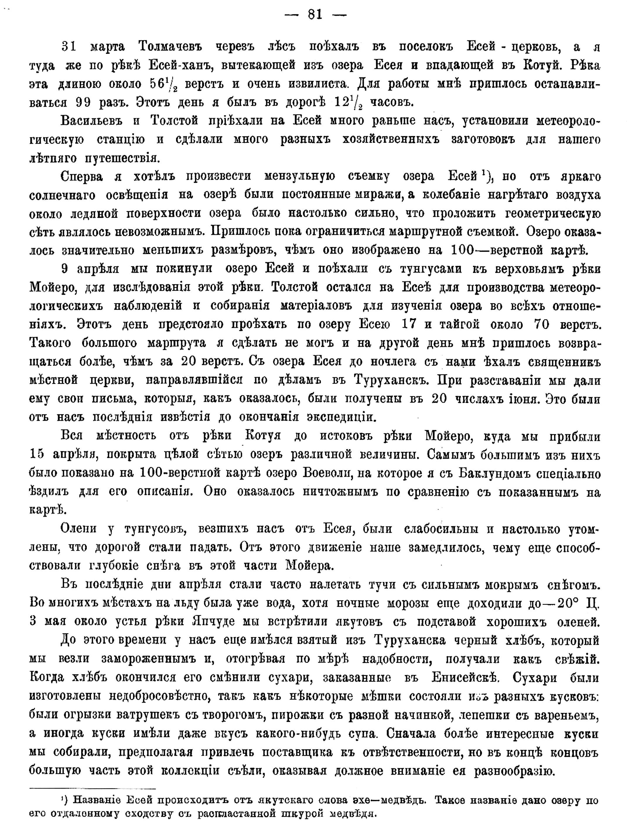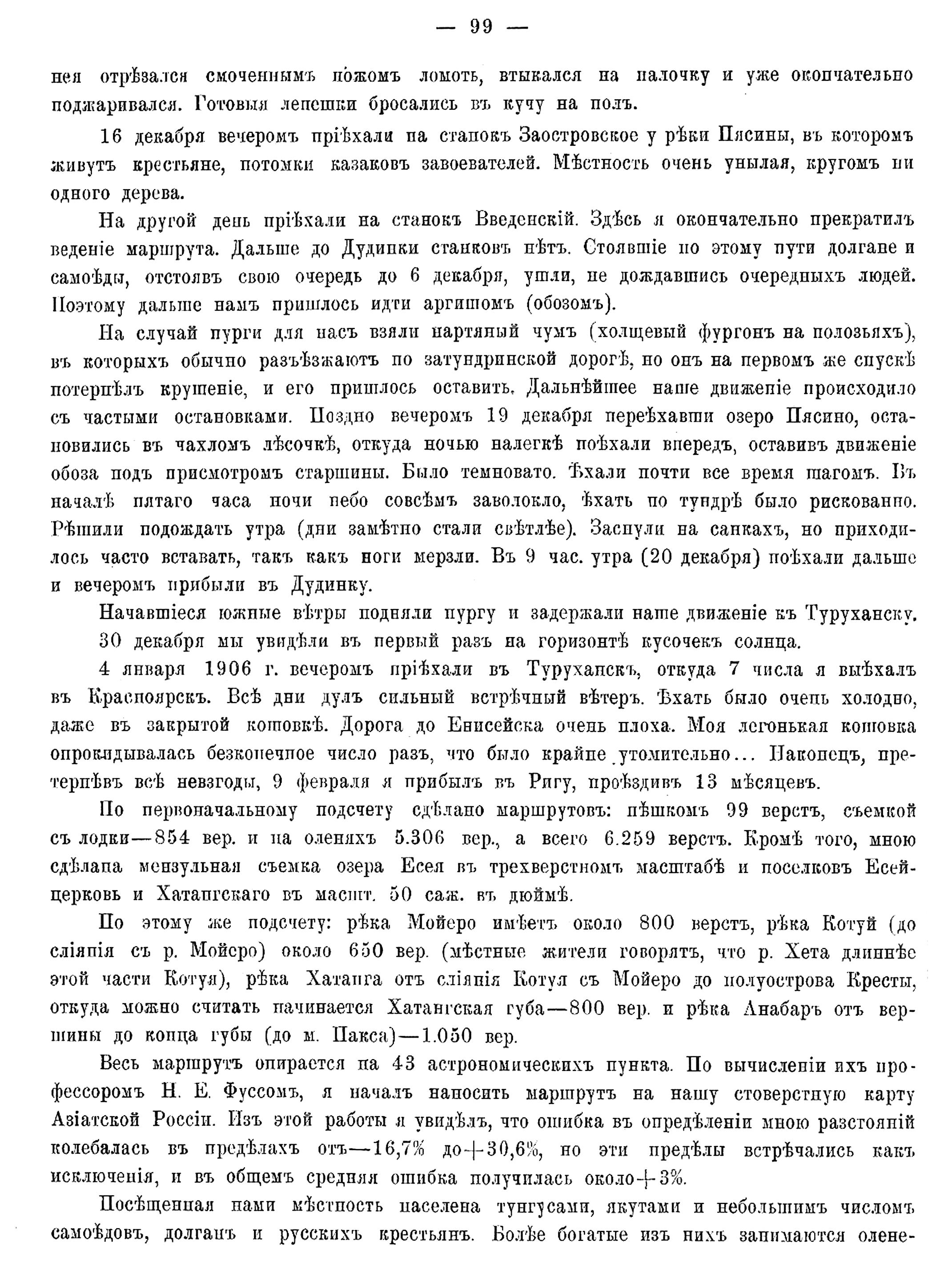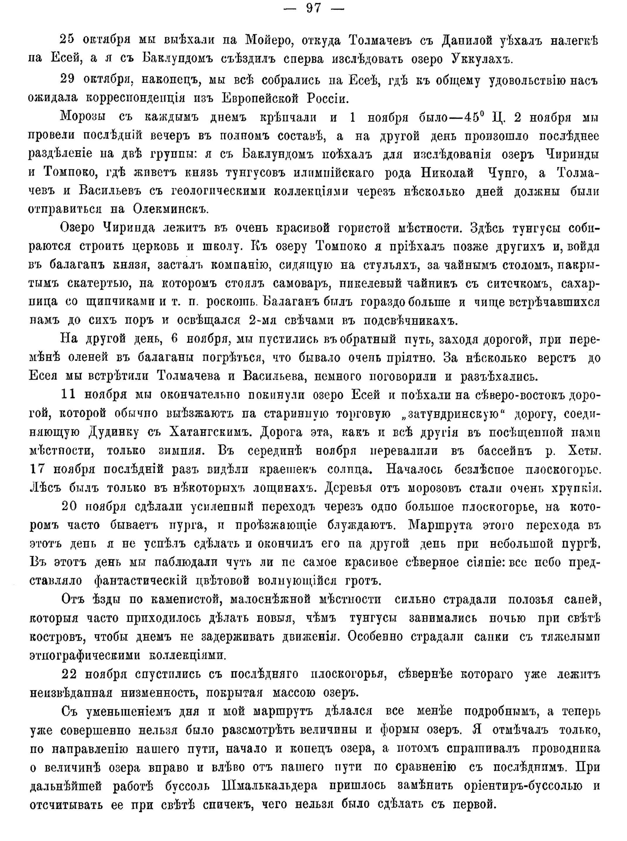 Трехлѣтное пребываніе на Мурманской съемкѣ будетъ для меня всегда однимъ изъ самыхъ пріятныхъ воспоминаній моей службы послѣднихъ лѣтъ. Дальнѣйшему пребыванію на этой съемкѣ помѣшало мое сильное желаніе участвовать въ работахъ Ленско-Чукотской экспедиціи 1909 года.