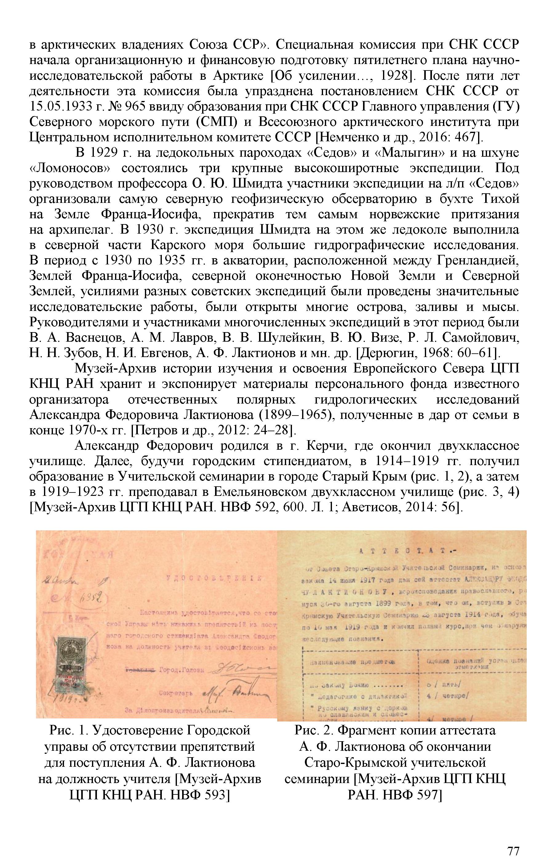 Эти работы послужили основанием для присуждения Лактионову в 1938 году ученой степени кандидата географических наук без защиты диссертации.