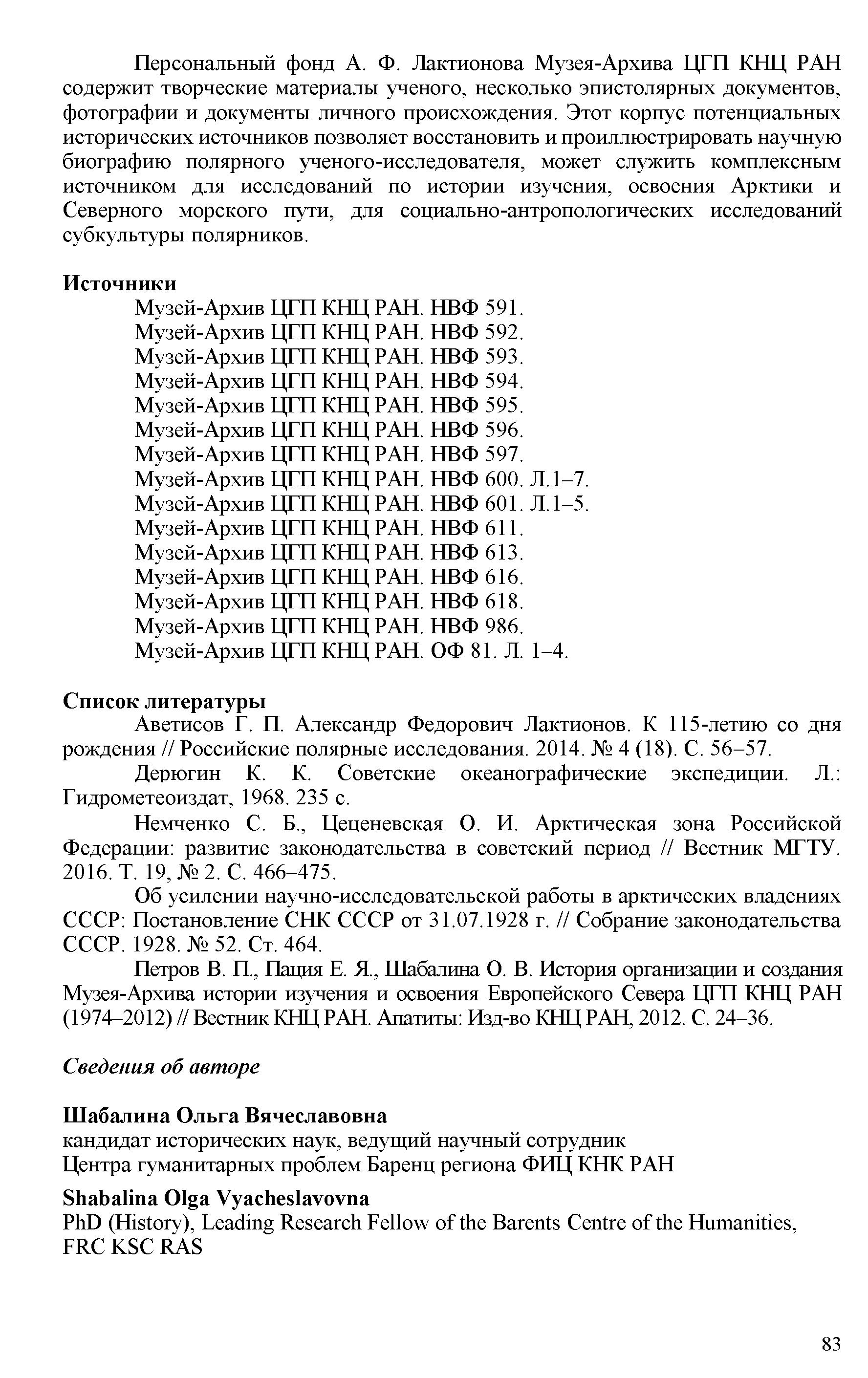 МАТЕРИАЛЫ ПЕРСОНАЛЬНОГО ФОНДА А. Ф. ЛАКТИОНОВА
