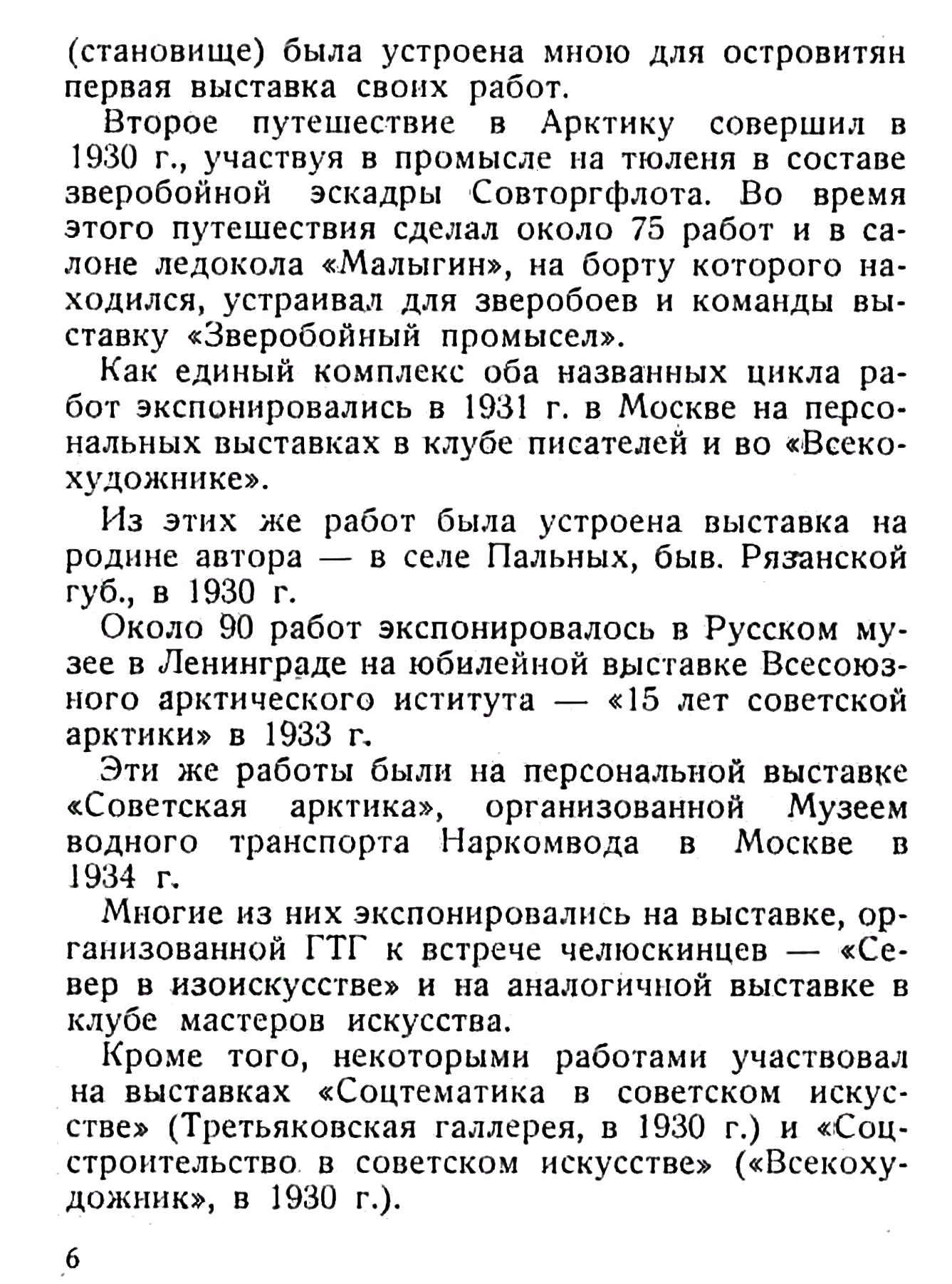 Эти же работы были на персональной выставке «Советская арктика», организованной Музеем водного транспорта Наркомвода в Москве в 1934 г.