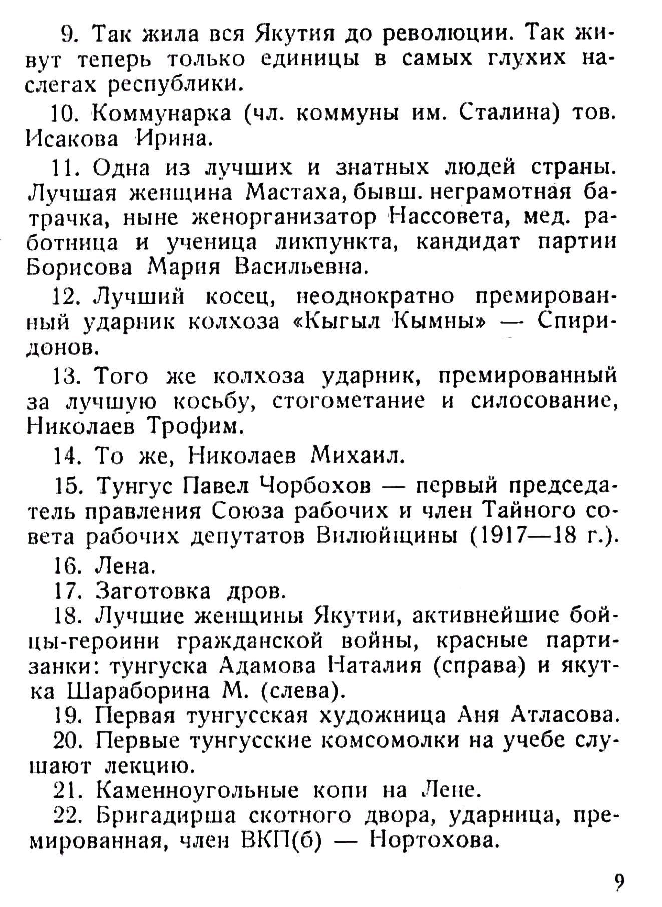 11. Одна из лучших и знатных людей страны. Лучшая женщина Мастаха, бывш, неграмотная батрачка, ныне Женорганизатор Нассовета, мед. работница и ученица ликпункта, кандидат партии Борисова Мария Васильевна.