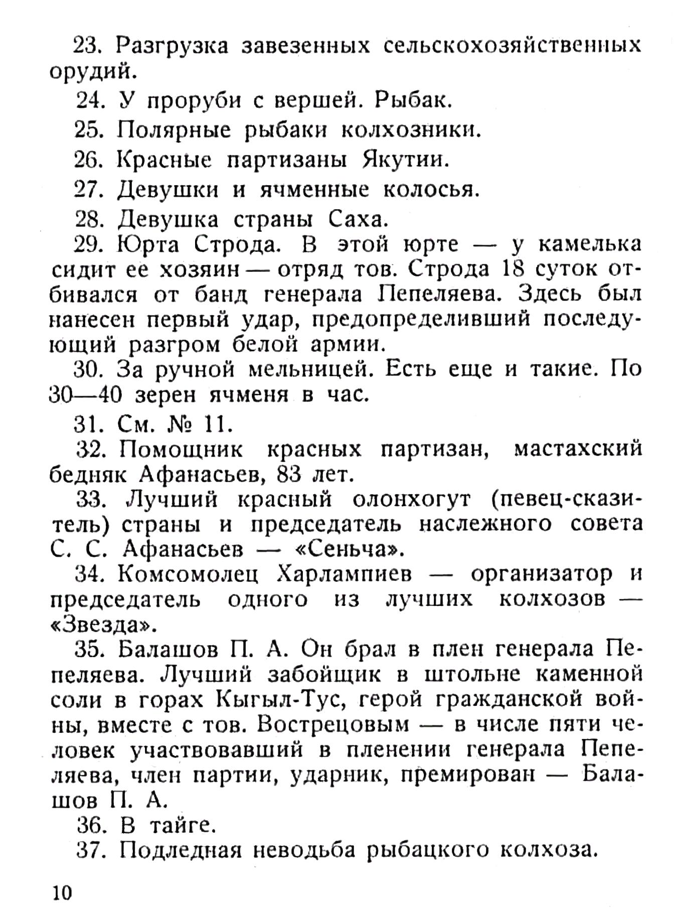 35. Балашов П. А. Он брал в плен генерала Пепеляева. Лучший забойщик в штольне каменной соли в горах Кыгыл-Тус, герой гражданской войны, вместе с тов. Вострецовым — в числе пяти человек участвовавший в пленении генерала Пепеляева, член партии, ударник, премирован — Балашов П. А.