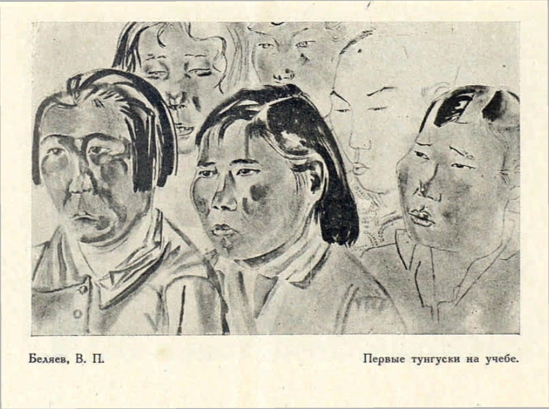 Художник В. П. Беляев, ходивший по поручению комитета Севера при президиуме ВЦИК на тюленьи промысла на л/к «Малыгин», организовал совместно с врачами А. С. Чечулиным и В. М. Леонтьевым (которые дали фотографии) выставку своих работ-рисунков цветными карандашами для зверобоев и команды «Малыгина».