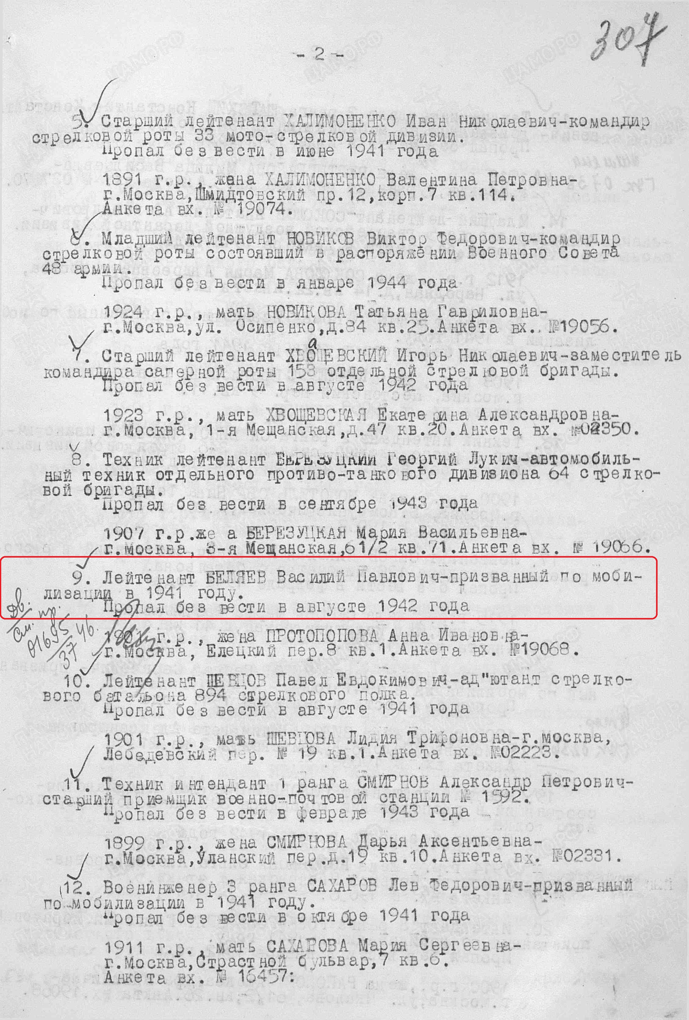 В БД ОБД Мемориал имеется следующая информация: