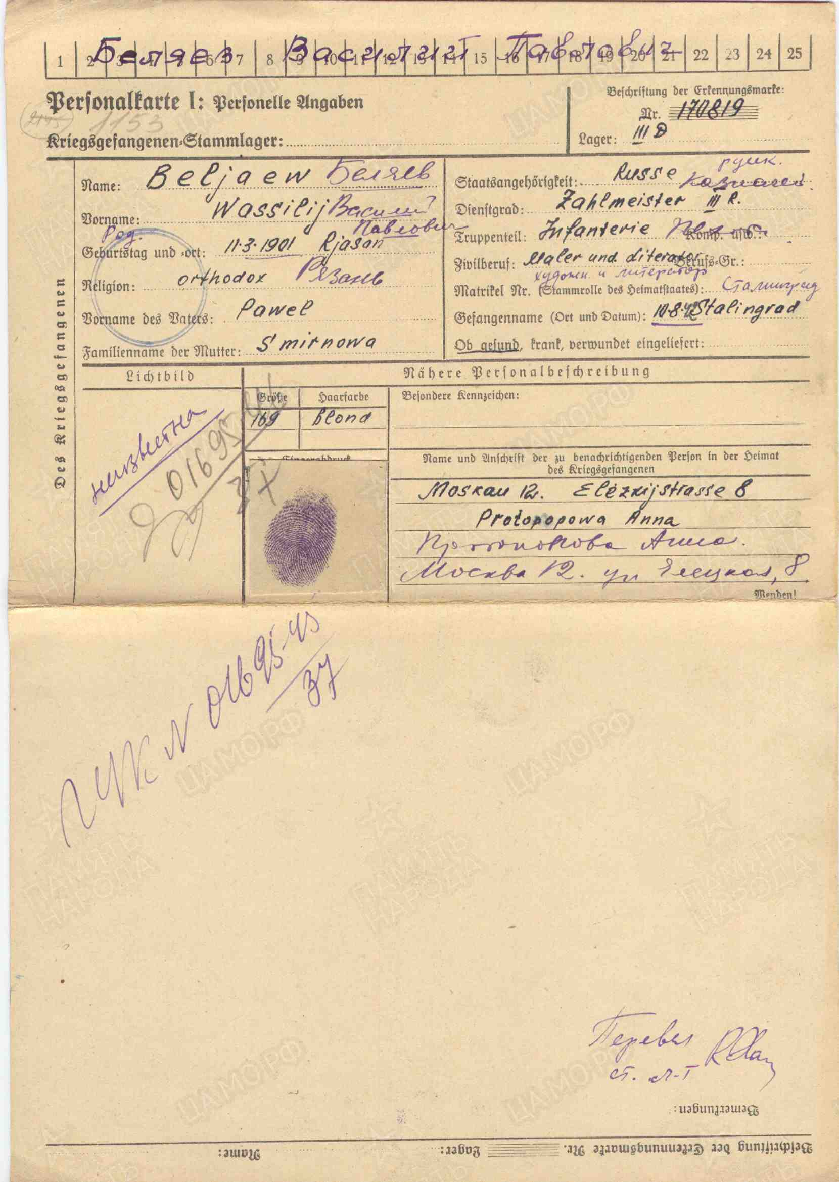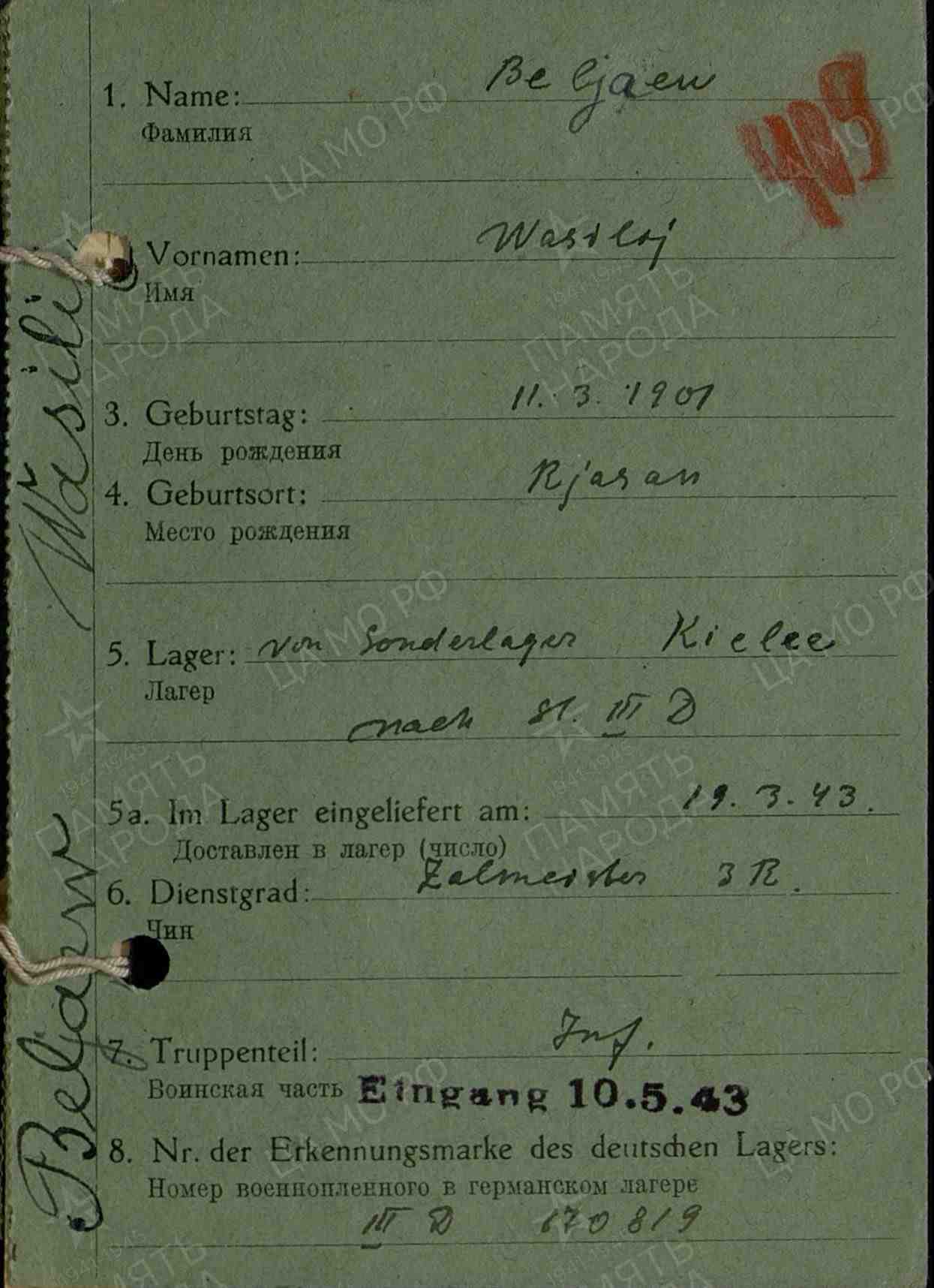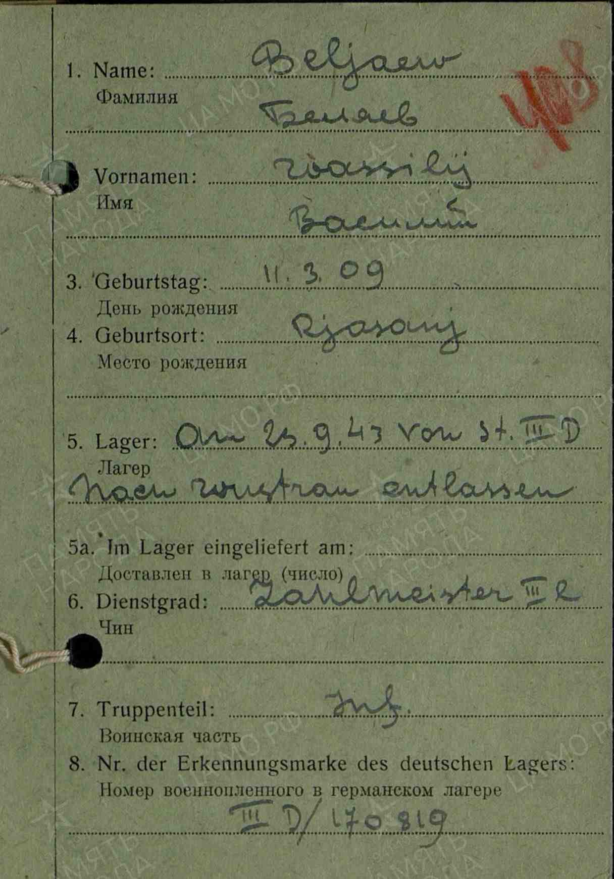 Информация о военнопленном