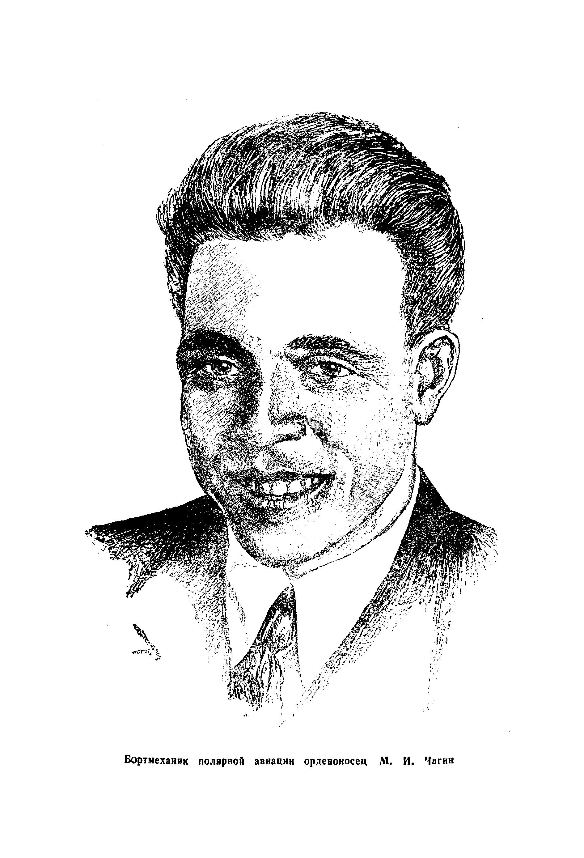 Скромный, необычайно работоспособный и инициативный, настойчивый, любящий Арктику полярник — таков бортмеханик 1-го класса большевик Чагин.