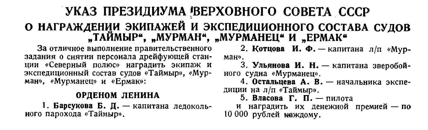 За работу в экспедиции по снятию папанинцев со льдины Михаил Иванович Чагин награжден вторым орденом — Знаком почета.