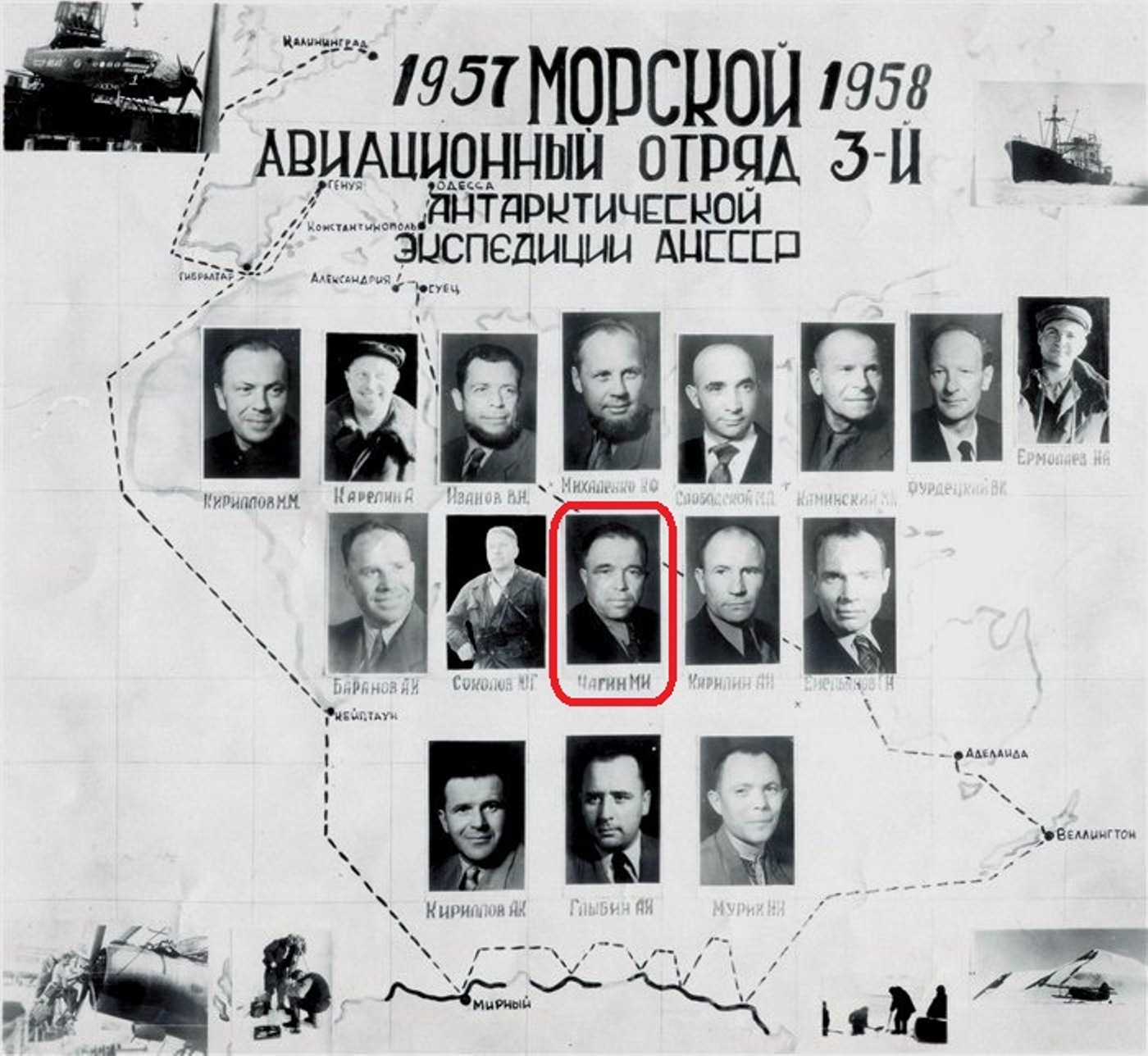 ... Своеобразным юмором и даром рассказчика обладал также бортмеханик Чагин, тот самый, что первым увидел подходящее для станции Мирный место на мысе Мабус.
